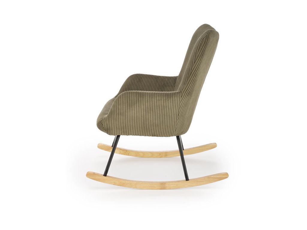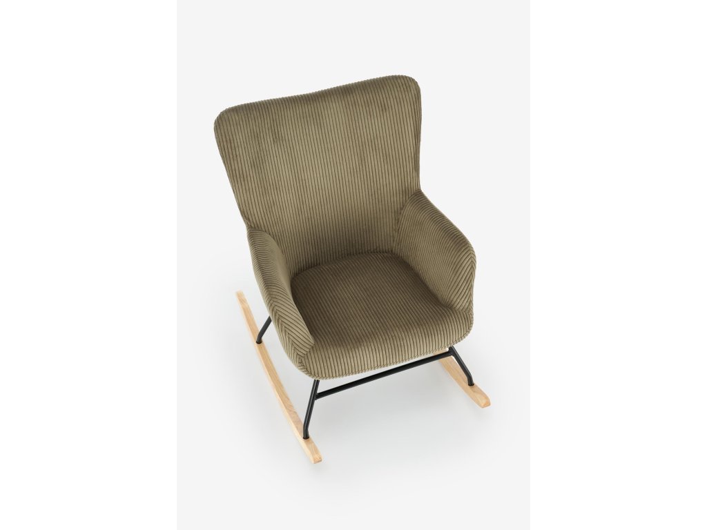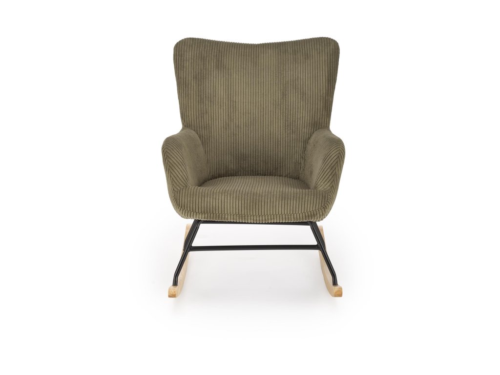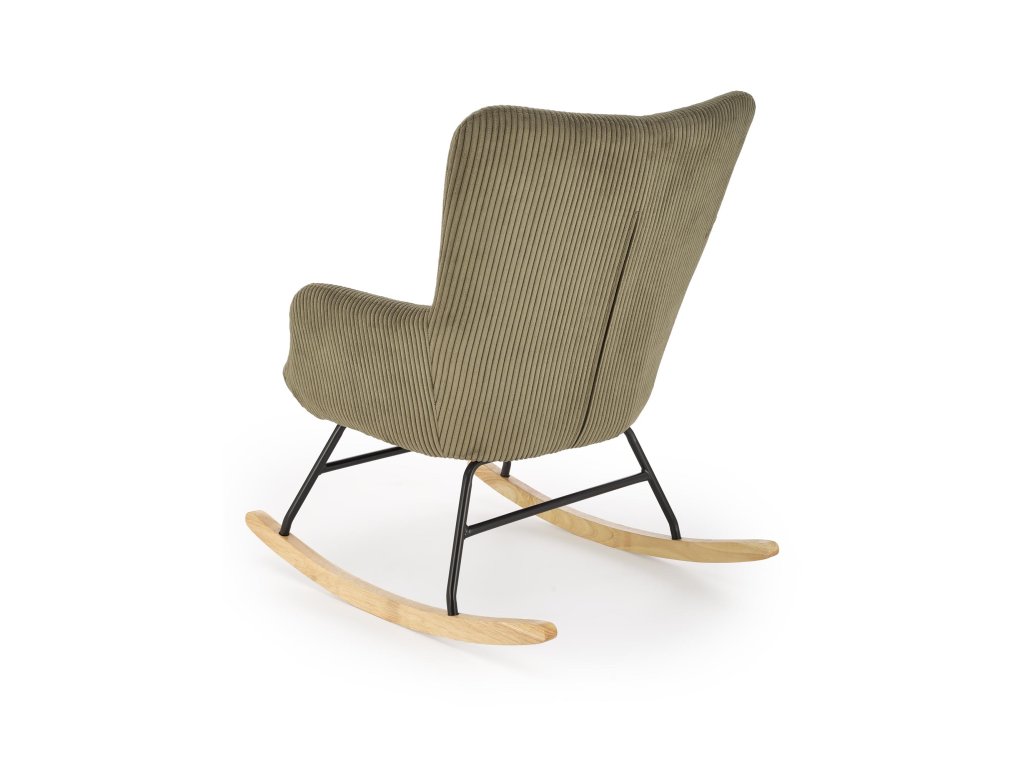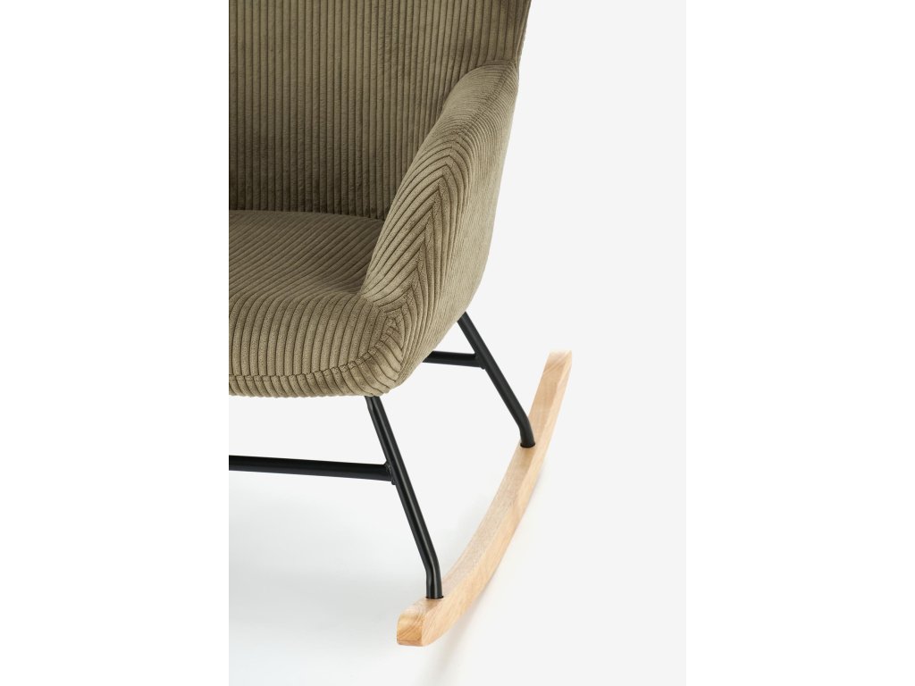 Houpací křeslo NIALL přináší do vašeho interiéru výjimečné spojení klasického designu a moderního komfortu. Jeho čalounění z měkké HYPER manšestrové tkaniny působí elegantně a zároveň příjemně na dotek. Jemná olivová barva a dřevěné běhouny vytvářejí harmonický celek s lehkým retro nádechem, který skvěle doplní jak moderní, tak tradiční interiéry.