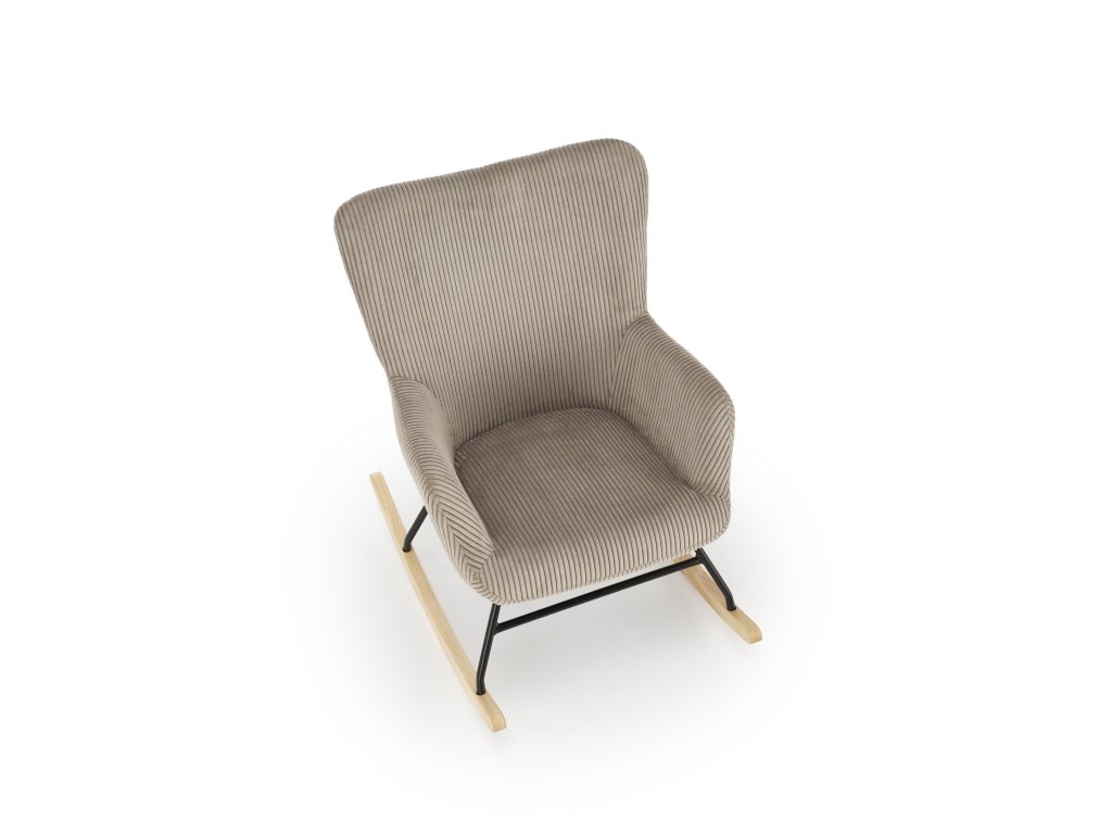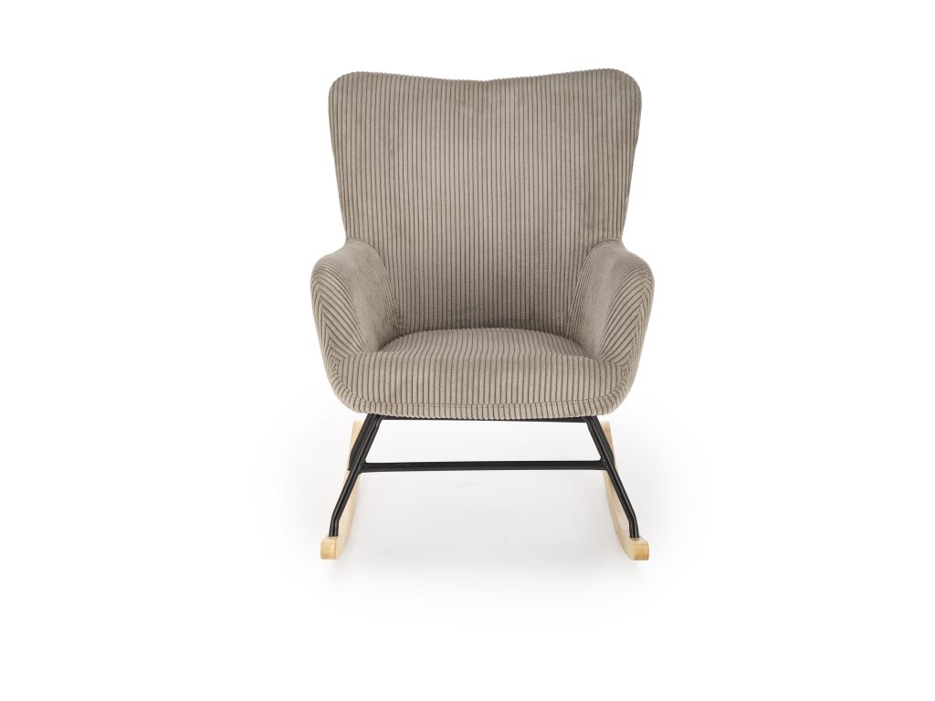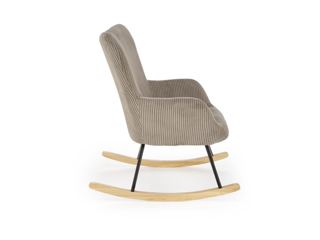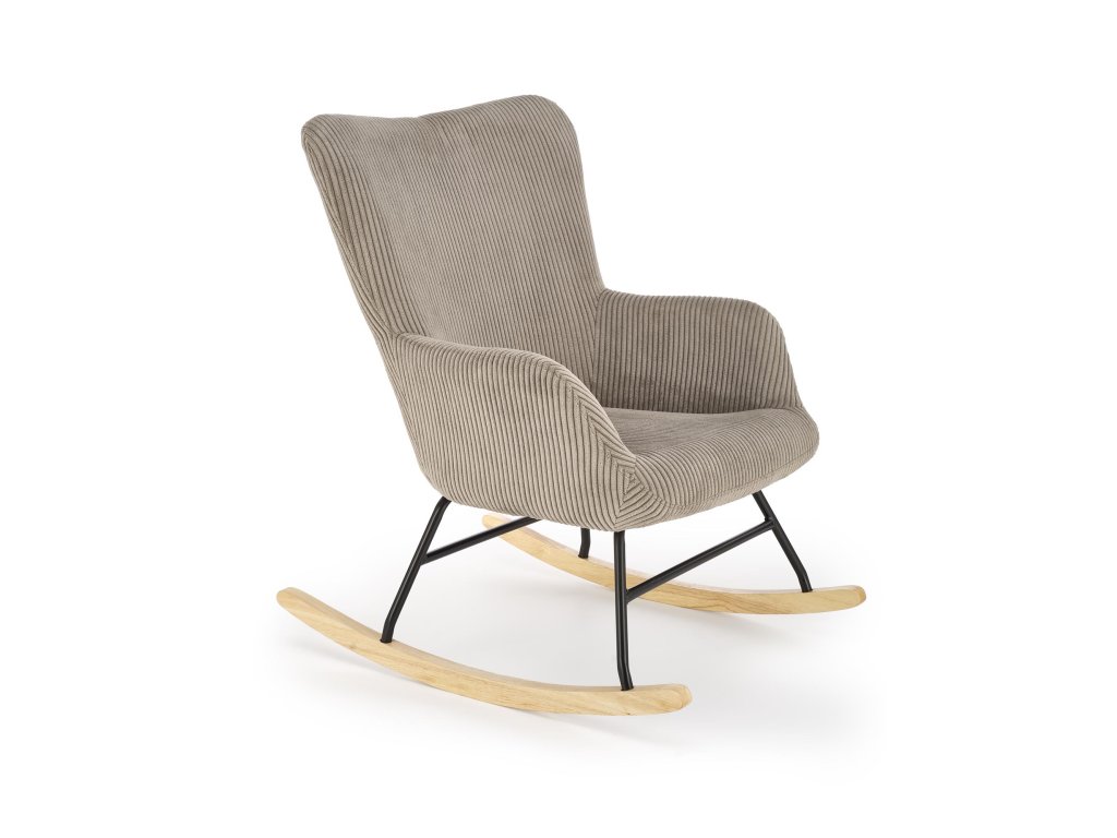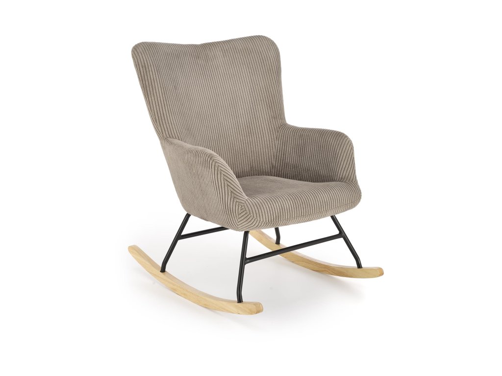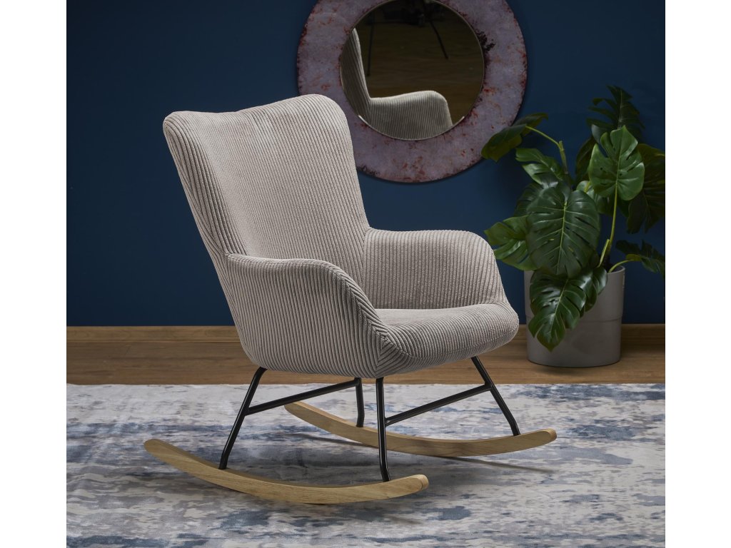 Houpací křeslo NIALL přináší do vašeho interiéru výjimečné spojení klasického designu a moderního komfortu. Jeho čalounění z měkké HYPER manšestrové tkaniny působí elegantně a zároveň příjemně na dotek. Neutrální šedá barva a dřevěné běhouny vytvářejí harmonický celek s jemným retro nádechem, který se hodí do různých stylů zařízení – od minimalistických po tradiční.
