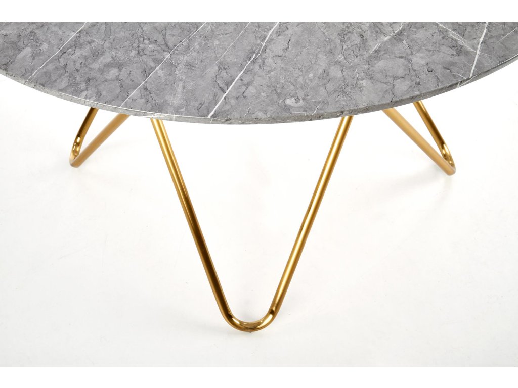 - Moderní design: Kulatý tvar a šedý mramor na desce dodají vašemu prostoru sofistikovaný a moderní vzhled, zatímco zlaté nohy z chromované oceli zajistí atraktivní kontrast.