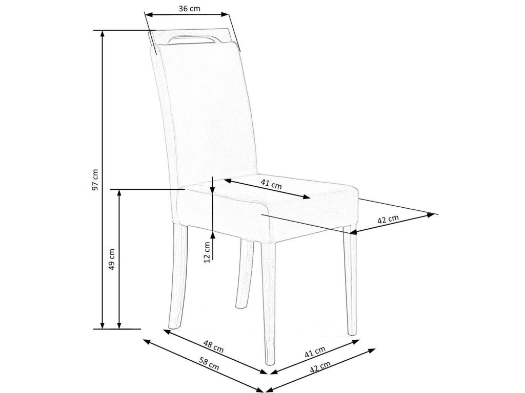 Čalounění z jemného šedého veluru je příjemné na dotek, snadno se udržuje a dodává židli elegantní a sofistikovaný vzhled. Nohy židle jsou vyrobené z kvalitního masivního dřeva s povrchovou úpravou v odstínu ořech, která zajišťuje pevnost a stabilitu a zároveň přináší přírodní teplý kontrast k chladivé šedi. Vysoký opěrák je vybaven praktickým madlem přes celou šířku pro snadné přenášení, područky zvyšují komfort při delším sezení.