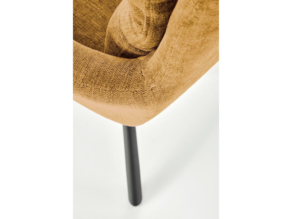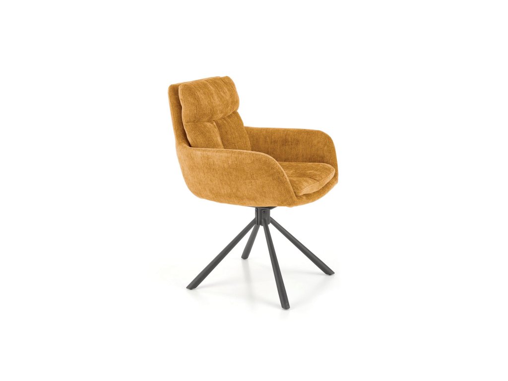 Otočná jídelní židle VMK495 v moderním hořčicovém provedení je skvělou volbou pro každého, kdo hledá kombinaci stylu, pohodlí a funkčnosti. Díky výrazné barvě a elegantnímu designu se židle hodí do různých typů interiérů – od jídelny až po pracovní nebo obývací pokoje. Její černá ocelová podnož s práškovým nástřikem a čtyři nohy, které se spojují v centrálním bodě, zajišťují stabilitu a odolnost. S hořčicovým čalouněním a pohodlnými polštáři na sedáku i opěradle nabízí maximální komfort pro každodenní používání.