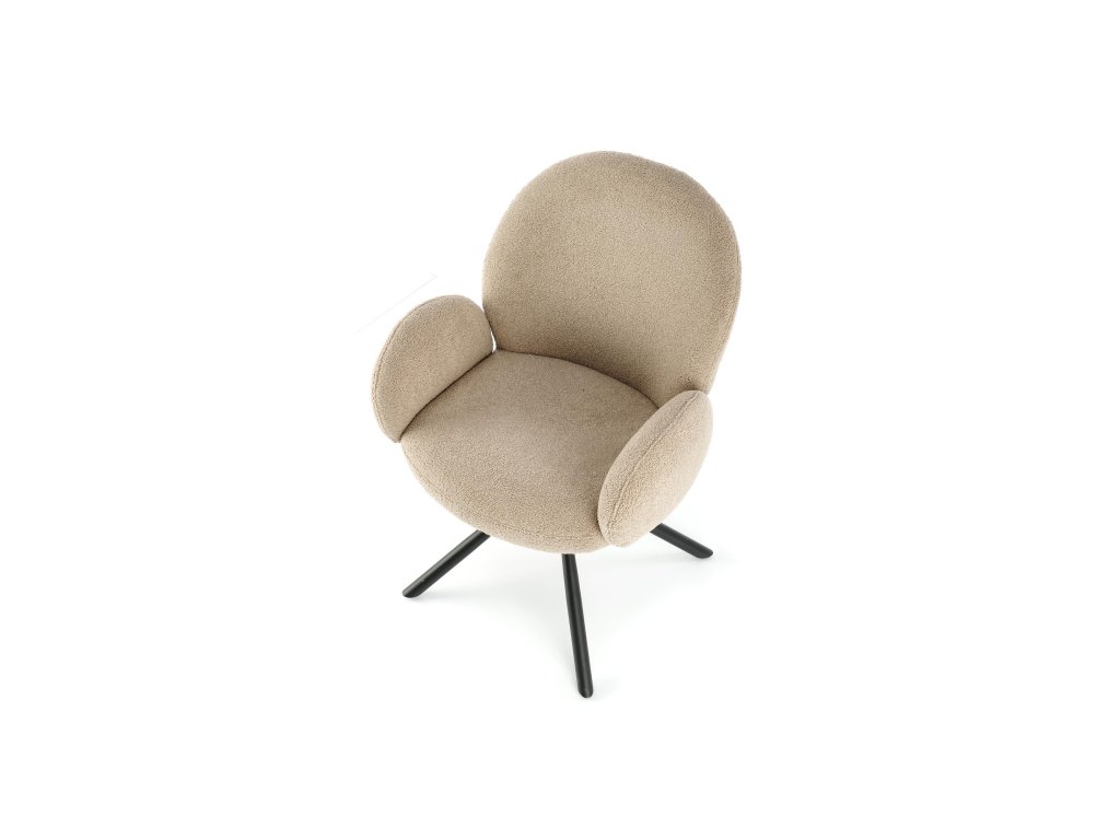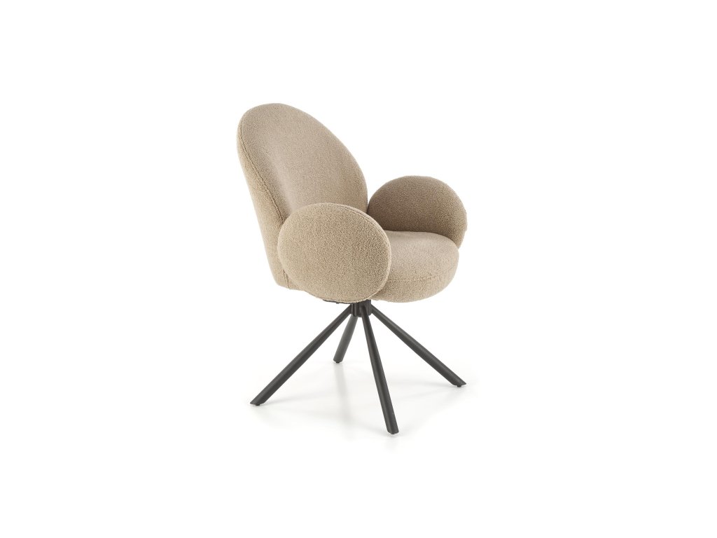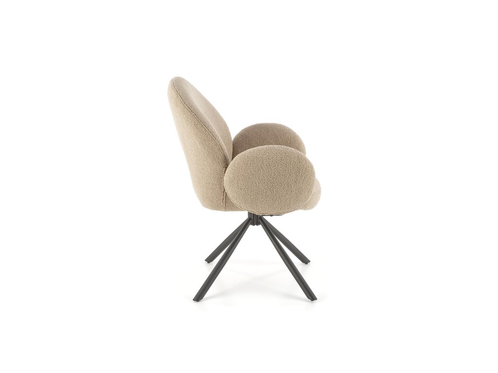 Otočná jídelní židle / křeslo VMK498 v odstínu cappuccino vyniká osobitým vzhledem, který kombinuje funkčnost s moderním stylem. Je čalouněná kvalitní látkou bouclé – měkkým, strukturovaným materiálem s charakteristickými uzly, které dodávají židli jedinečný vzhled a nádech elegance.