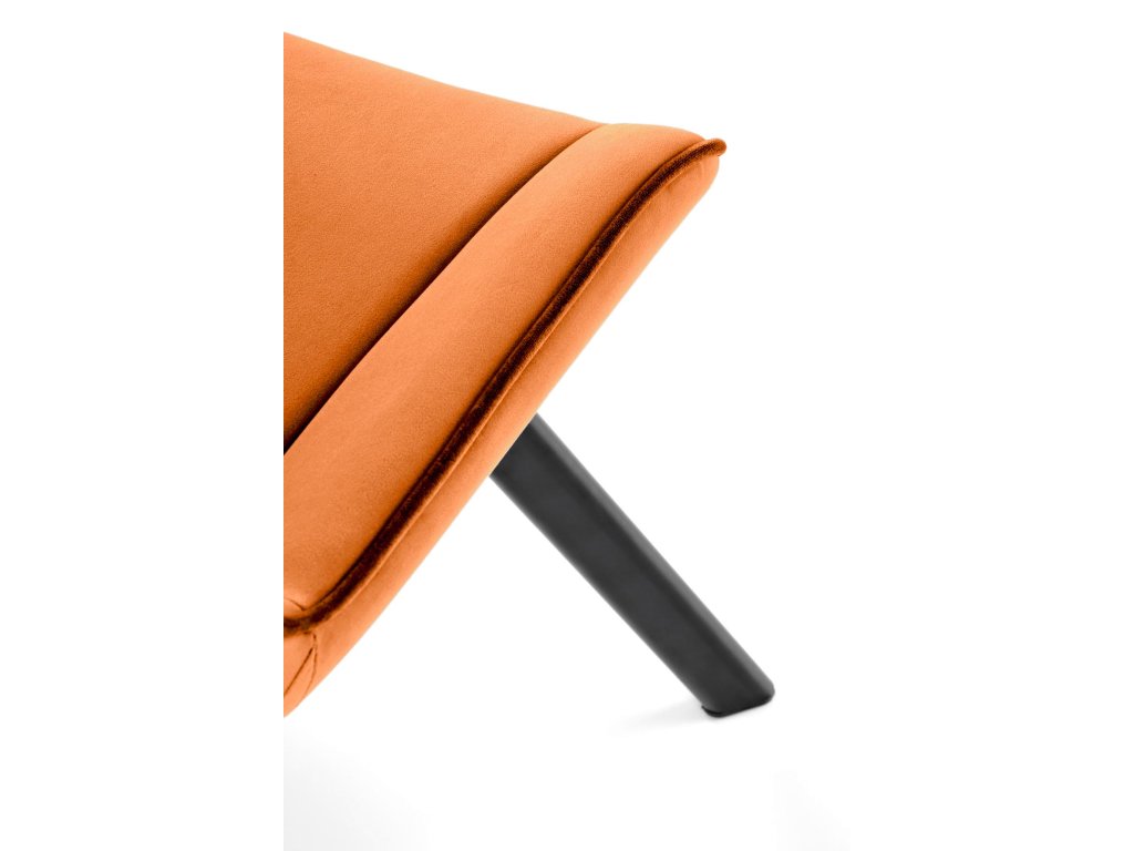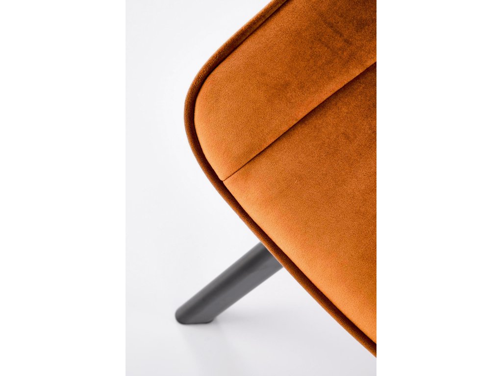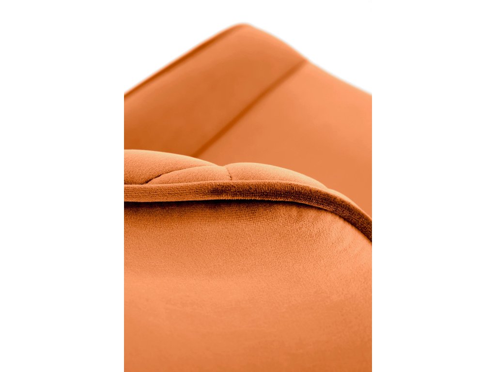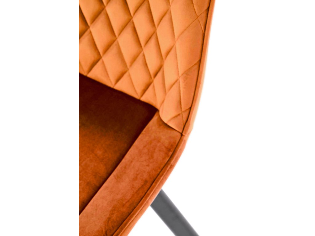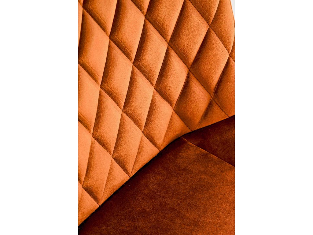 Elegantní skořicově hnědá sametová látka: Opěradlo židle je potaženo jemně lesklou sametovou látkou, která nejen vypadá elegantně, ale je i příjemně měkká na dotek. Tato teplá, zemitá barva přidává do interiéru útulnost a sofistikovanost.