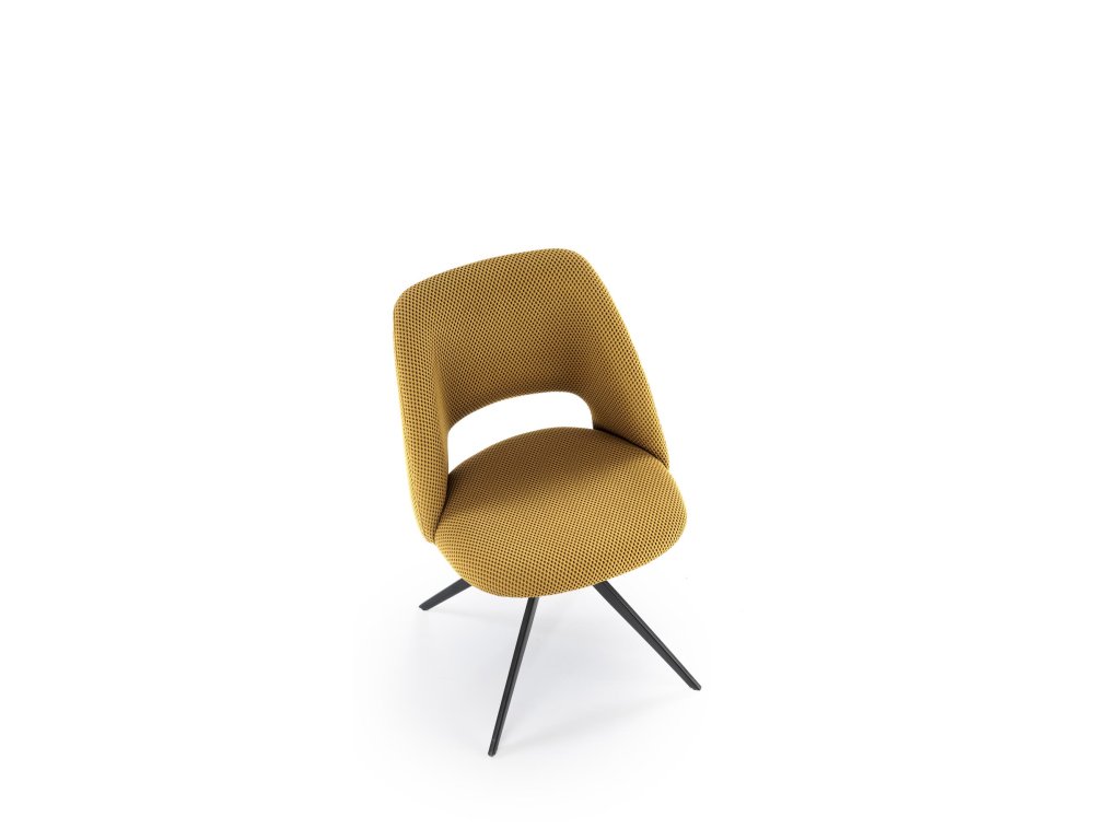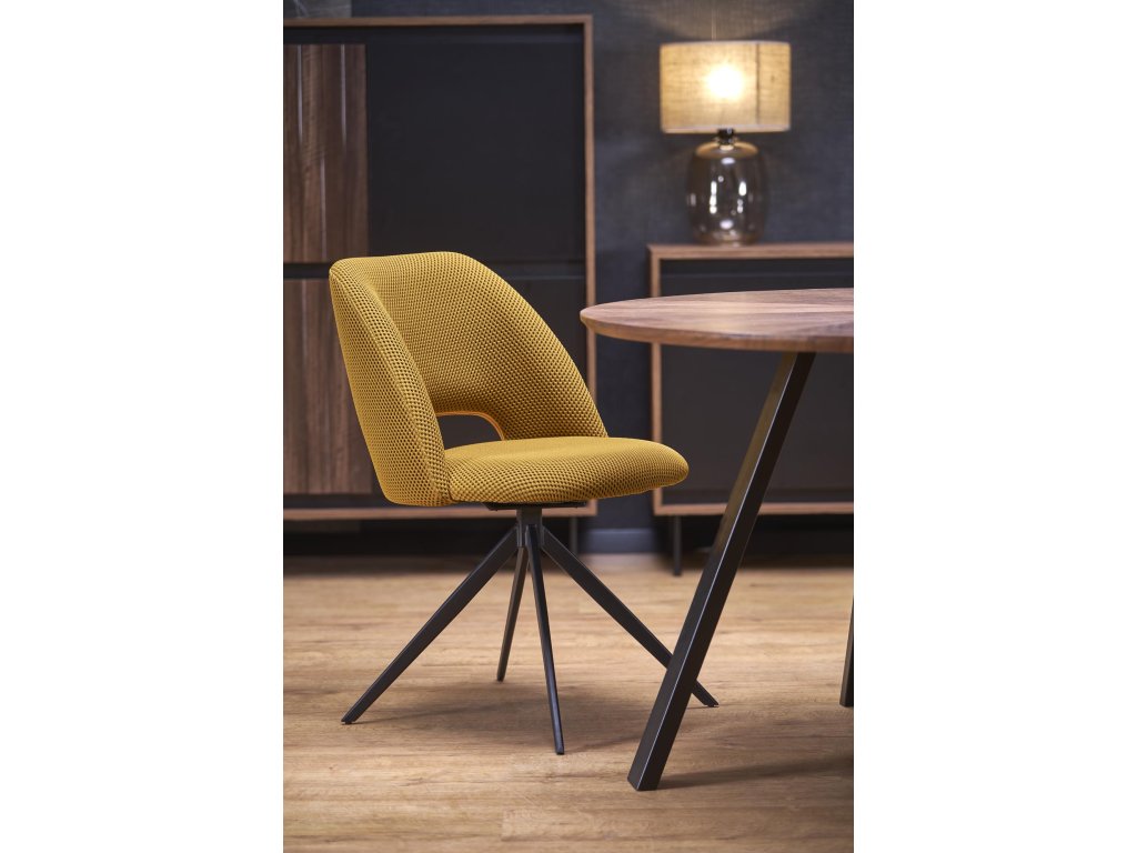 Moderní design: Kombinace hořčicového čalounění a černé ocelové základny vytváří dynamický a sofistikovaný vzhled, který se hodí do jakéhokoli interiéru – od jídelny až po obývací pokoj nebo moderní kancelář.