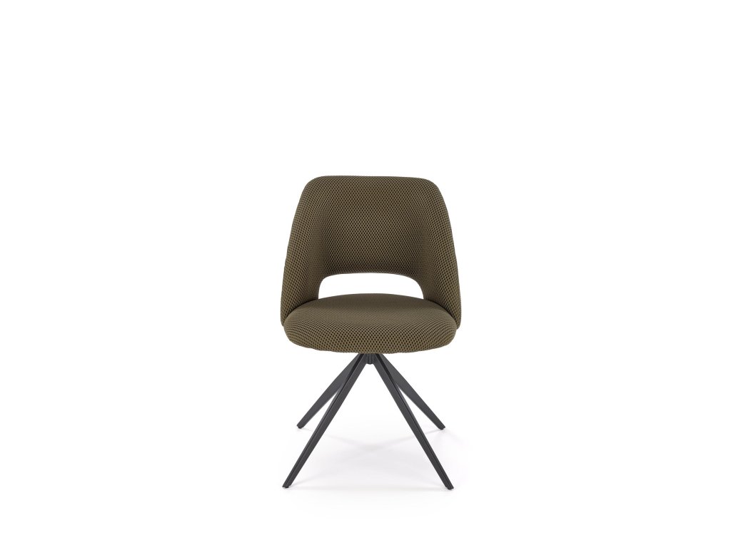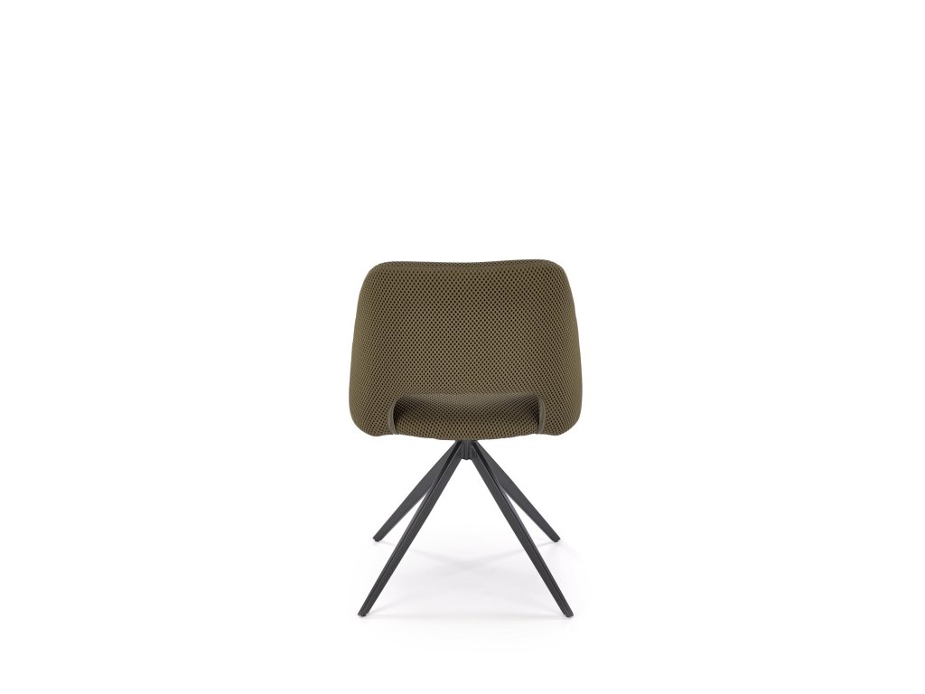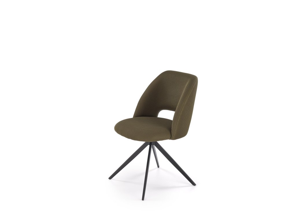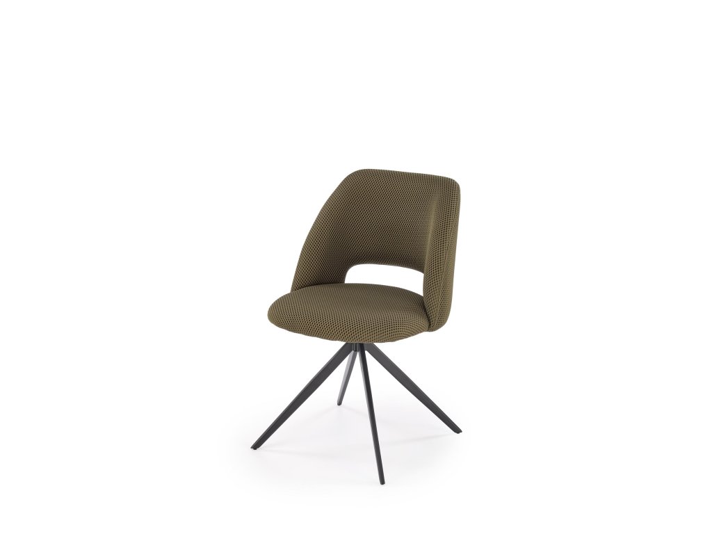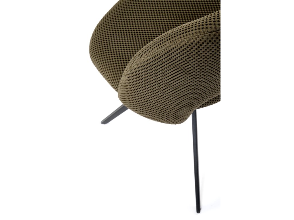 Moderní design: Kombinace olivového čalounění a černé ocelové základny vytváří dynamický a sofistikovaný vzhled, který se hodí do jakéhokoli interiéru – od jídelny až po obývací pokoj nebo moderní kancelář.
