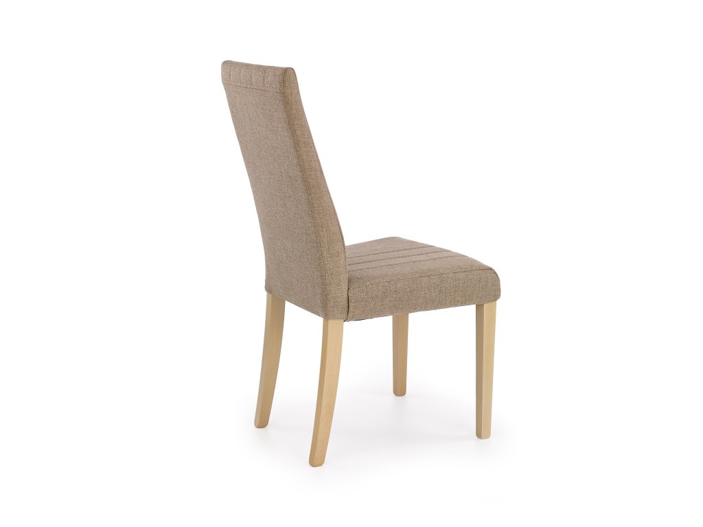 Konstrukce židle je vyrobena z masivního bukového dřeva mořeného do přírodního odstínu dub sonoma, který připomíná světlé dubové dřevo a skvěle ladí s moderním nábytkem. Sedák je čalouněn na dotek příjemnou látkou v univerzální šedé barvě, která zajišťuje pohodlí a snadnou údržbu.