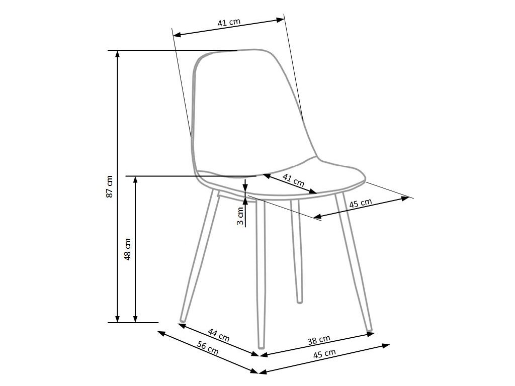 Komfortní sezení: S výškou sedu 48 cm a ergonomickým tvarem je židle ideální pro pohodlné sezení během jídla nebo společenských chvil.