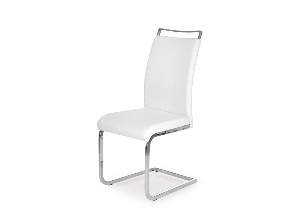 Pevná konstrukce z chromované oceli spolu s čalouněním z bílé ekokůže poskytuje nejen luxusní vzhled, ale také snadnou údržbu a dlouhou životnost. V horní části opěradla se nachází praktické madlo, které usnadňuje manipulaci se židlí.