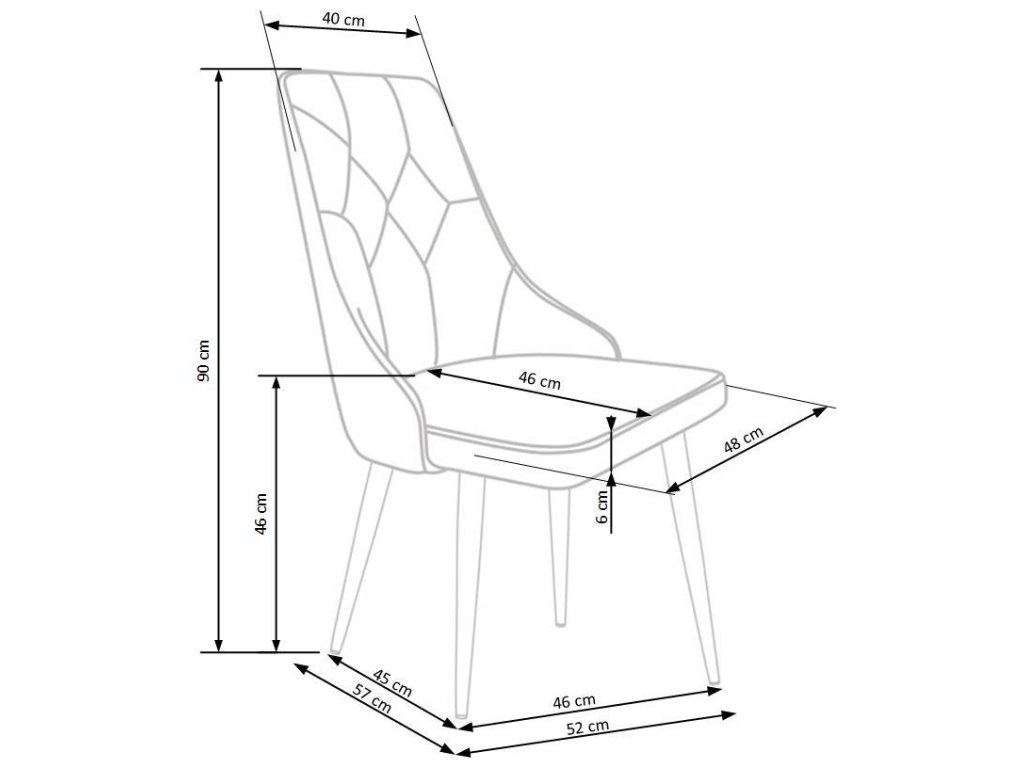 Výška: 90 cm | Výška sedu: 46 cm | Šířka: 52 cm | Hloubka: 57 cm