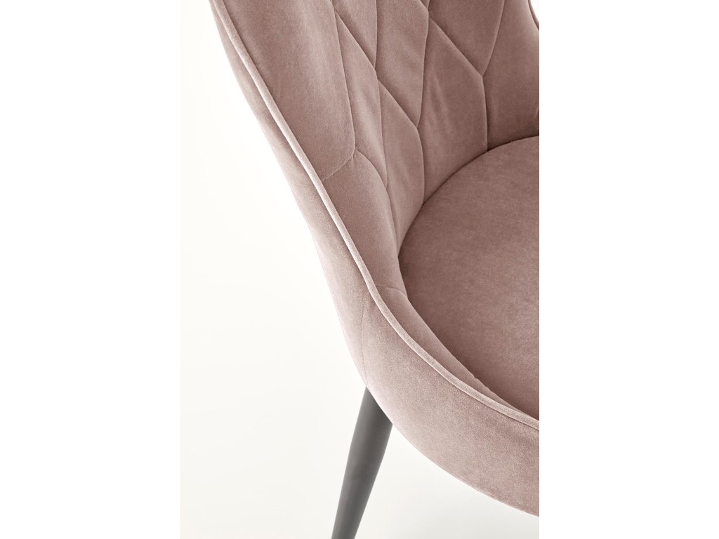 Jídelní židle VMK366 v béžovém sametu přináší dokonalou kombinaci moderního designu a klasických prvků. Její neobvyklý tvar v kombinaci s ozdobným prošíváním na opěradle odkazuje na Ludvíkovu eleganci a dodává každému interiéru luxusní nádech. Oboustranné čalounění sametovou látkou vytváří atraktivní efekt lesku při dopadu světla, což podtrhuje exkluzivní charakter židle.