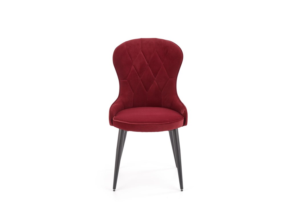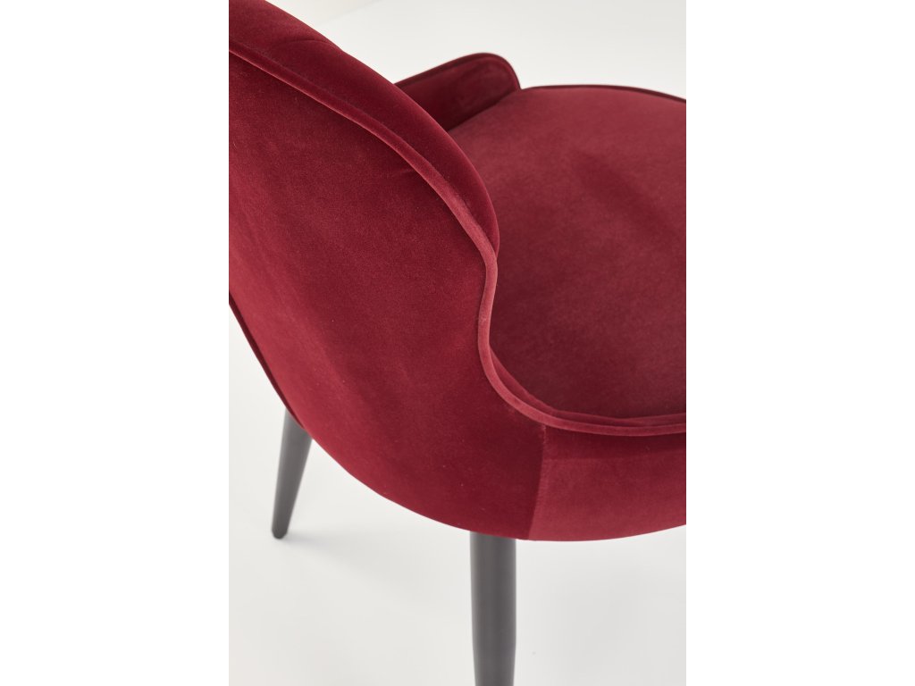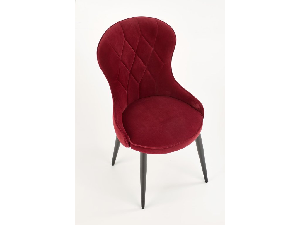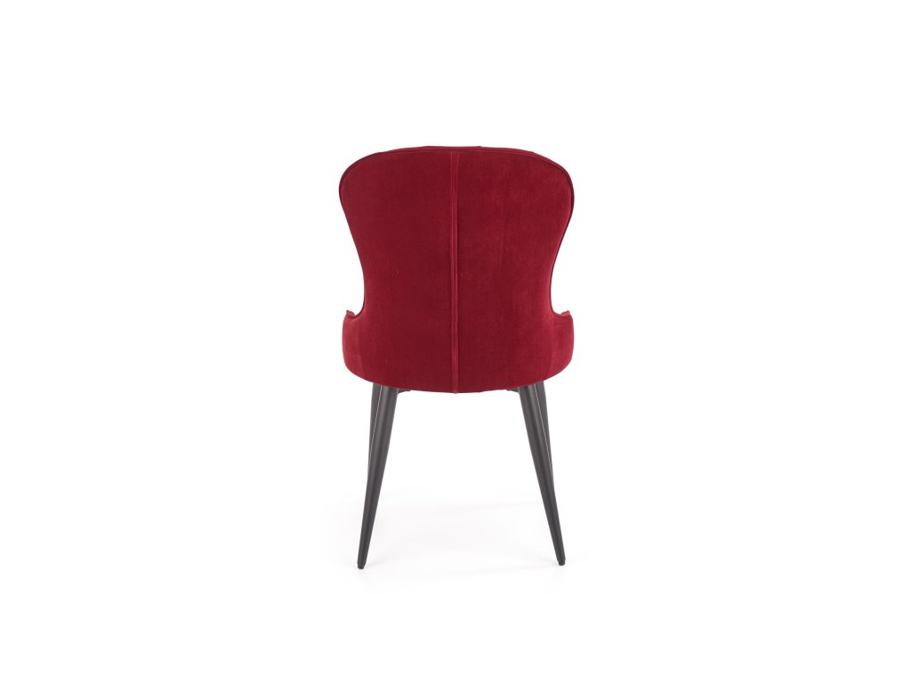 Jídelní židle VMK366 v bordo sametu přináší dokonalou kombinaci moderního designu a klasických prvků. Její neobvyklý tvar v kombinaci s ozdobným prošíváním na opěradle odkazuje na Ludvíkovu eleganci a dodává každému interiéru luxusní nádech. Oboustranné čalounění sametovou látkou vytváří atraktivní efekt lesku při dopadu světla, což podtrhuje exkluzivní charakter židle.