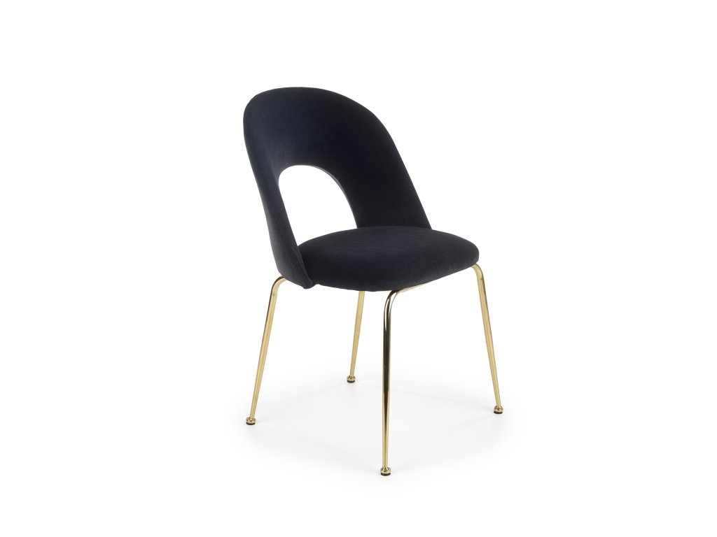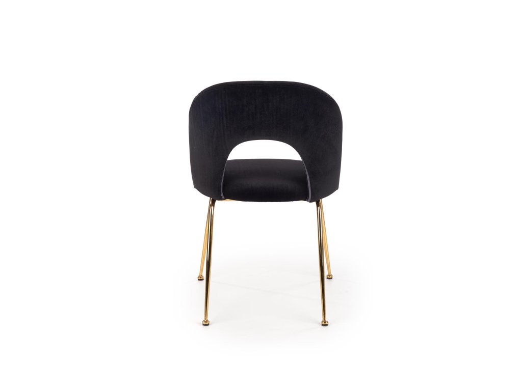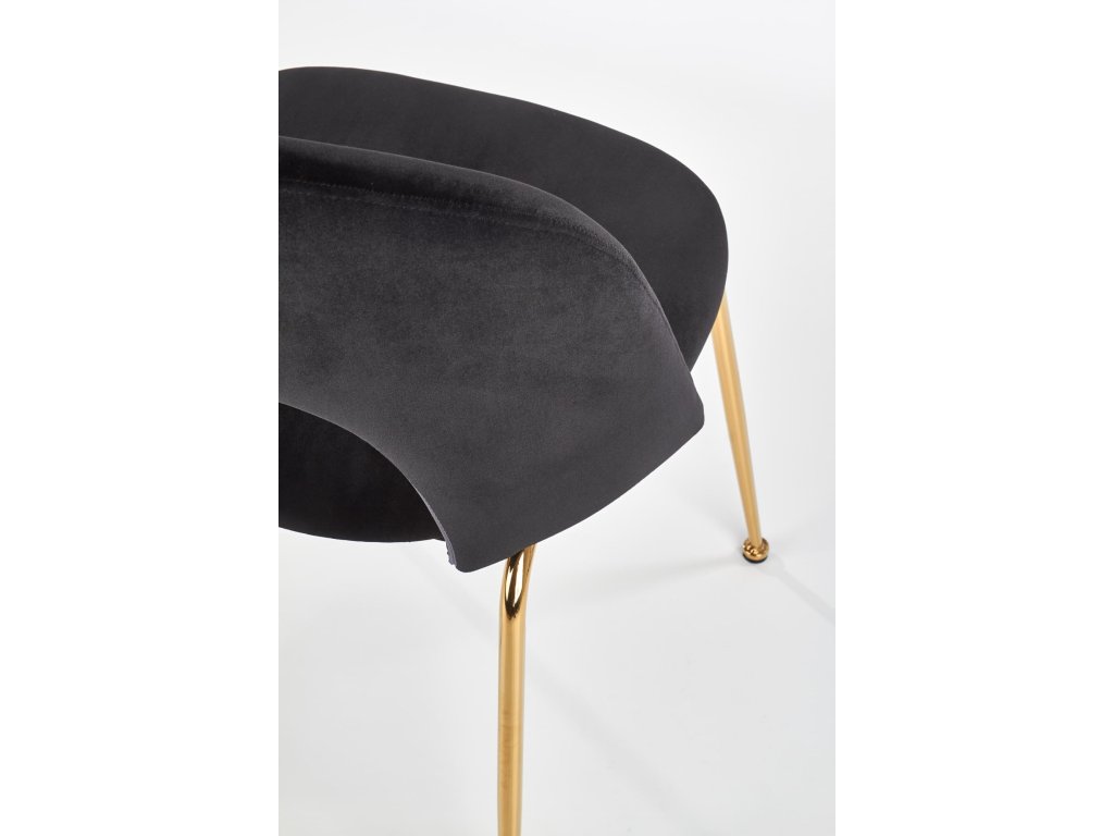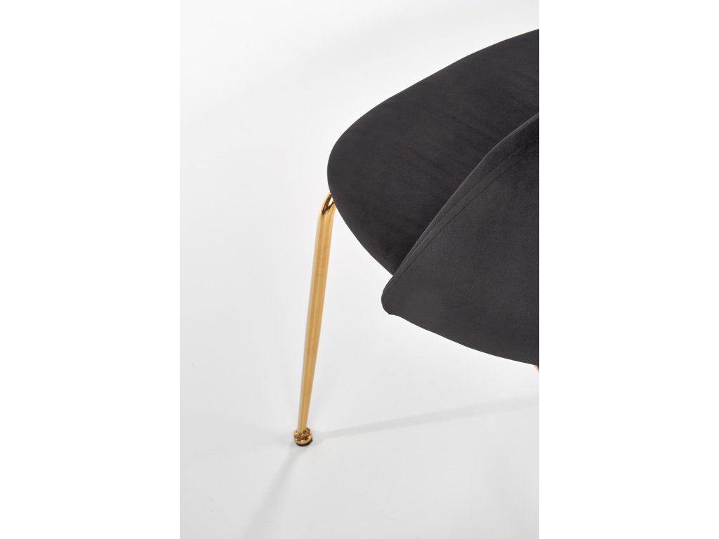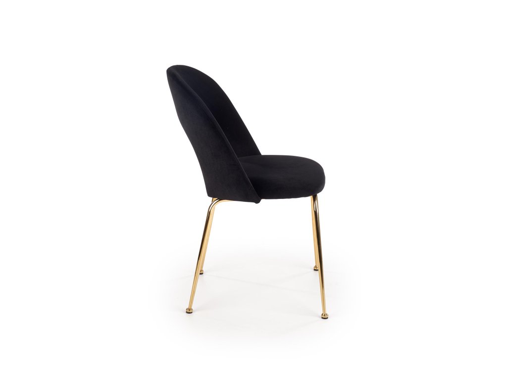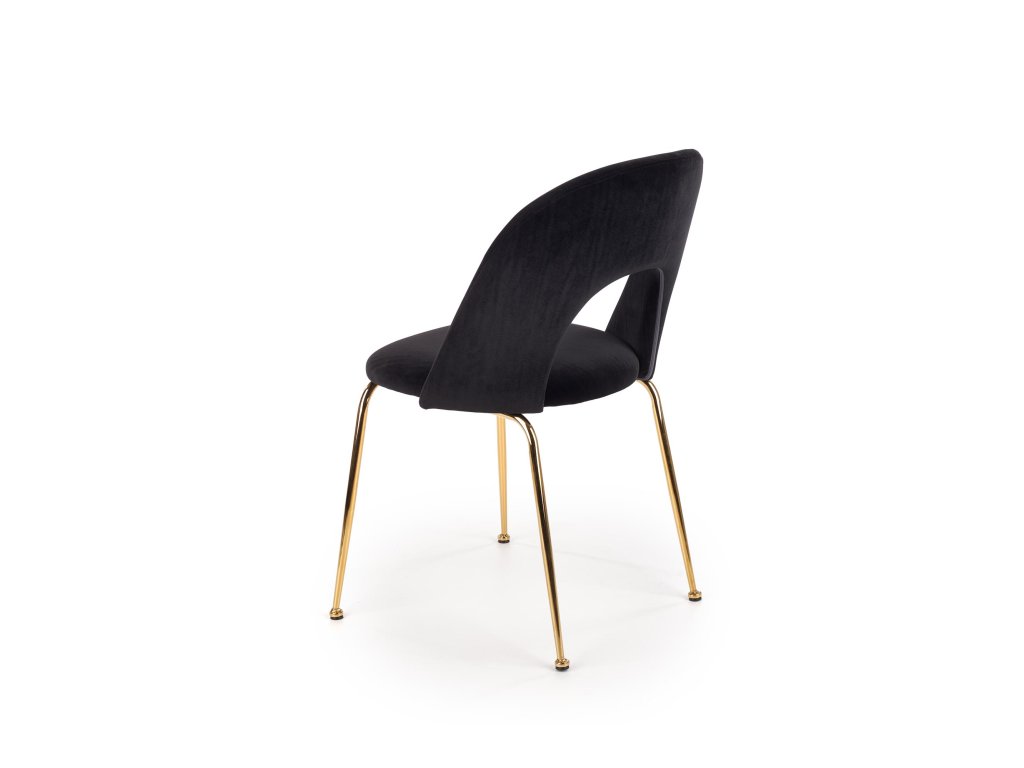 Zlaté chromové nohy židle z masivní oceli zaručují stabilitu a přidávají jí elegantní vzhled, který perfektně ladí s luxusním designem. Tato židle je nejen vizuálně atraktivní, ale i pohodlná díky ergonomickému tvarování, které vám zajistí příjemné sezení při každém jídle.