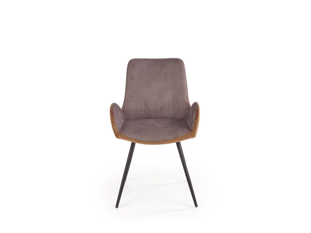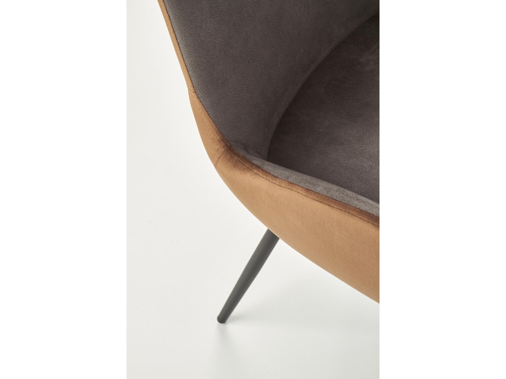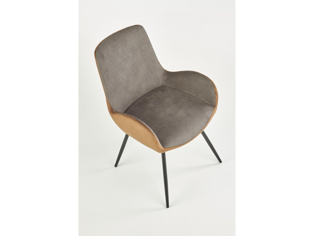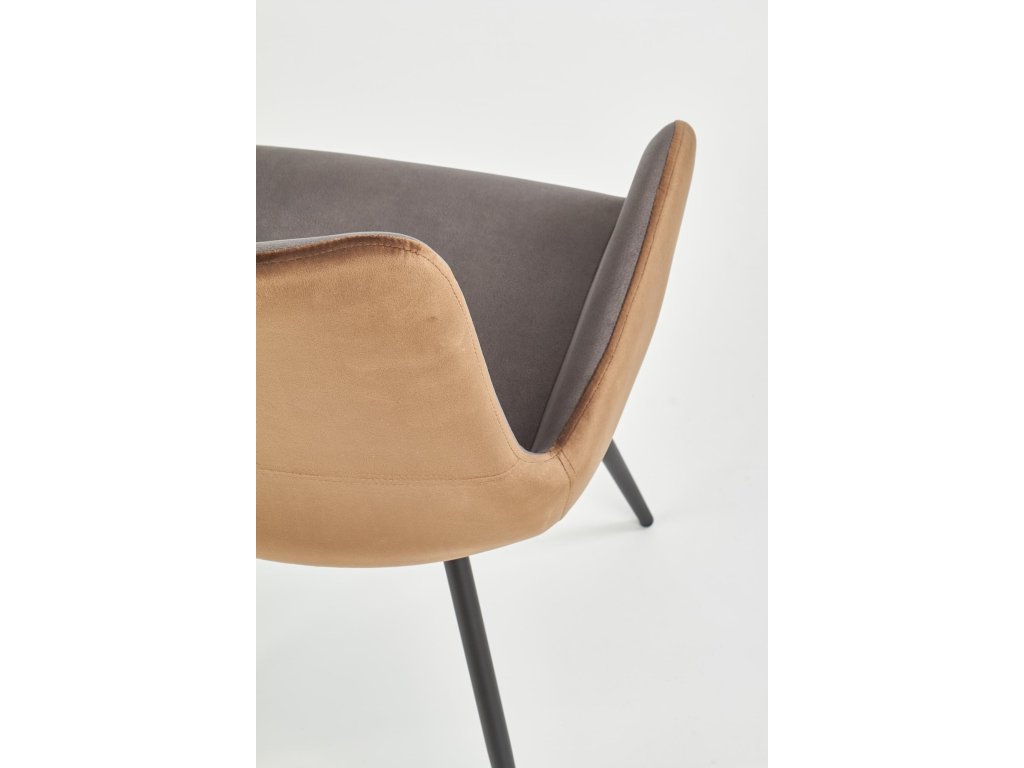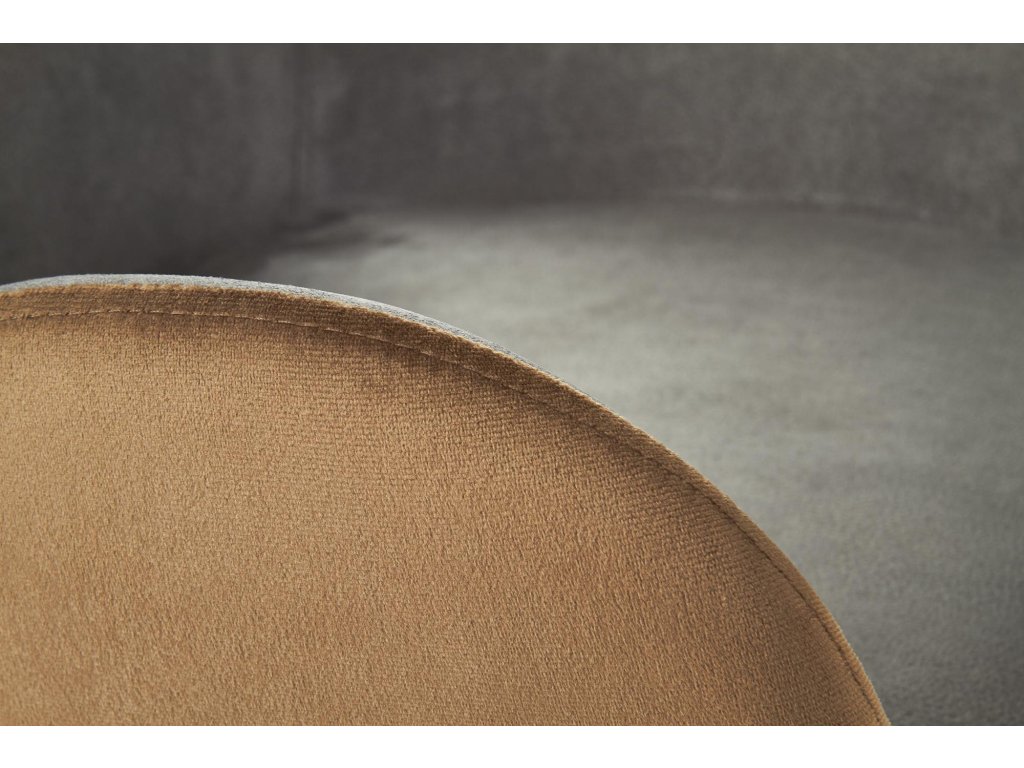 Židle je čalouněná vysoce kvalitní sametovou látkou, která je známá svou jemností, leskem a neuvěřitelným komfortem. Tento materiál přidává nádech luxusu a elegance, což ji činí vhodnou do moderního i tradičního prostoru. Dvojbarevné provedení – tmavě šedá uvnitř a hnědá zvenčí – činí tuto židli opravdu atraktivní a snadno ji zkombinujete s černým nebo skleněným jídelním stolem.