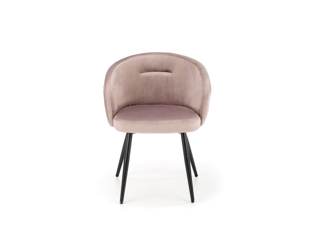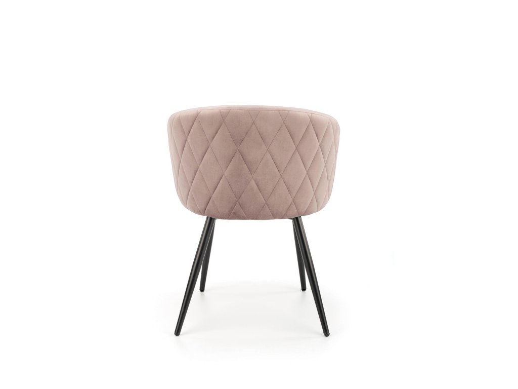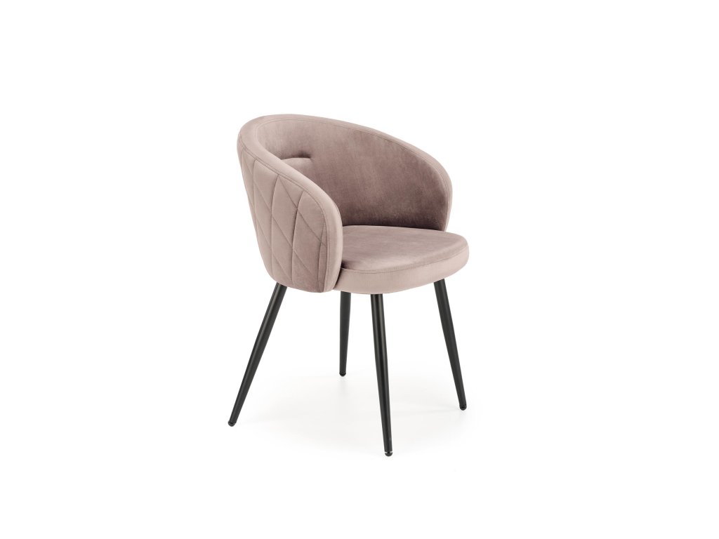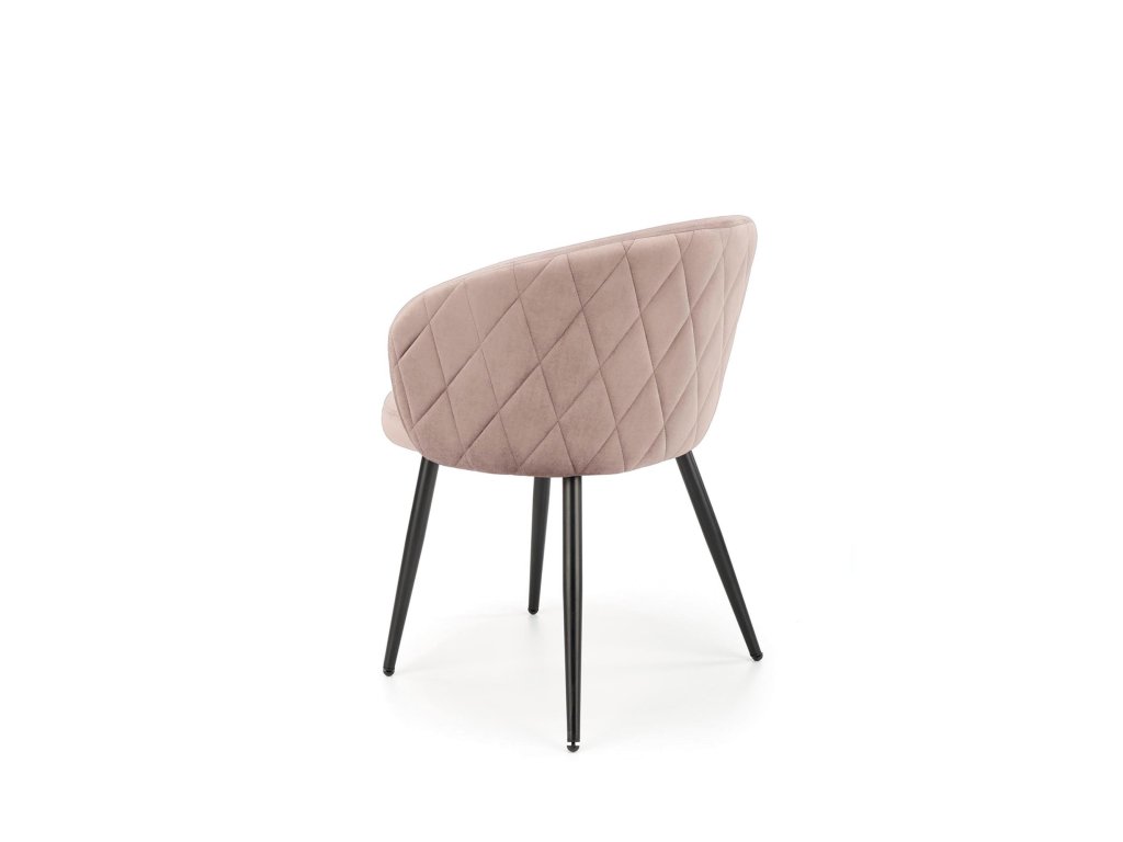Tvarovaná opěrka plynule přechází do pohodlných područek, které poskytují oporu při delším sezení. Z vnější strany je opěrka ozdobena dekorativním prošíváním, které podtrhuje celkový design. Židle je postavena na pevné ocelové konstrukci s černým práškovým nástřikem, která zajišťuje stabilitu a odolnost při každodenním používání.