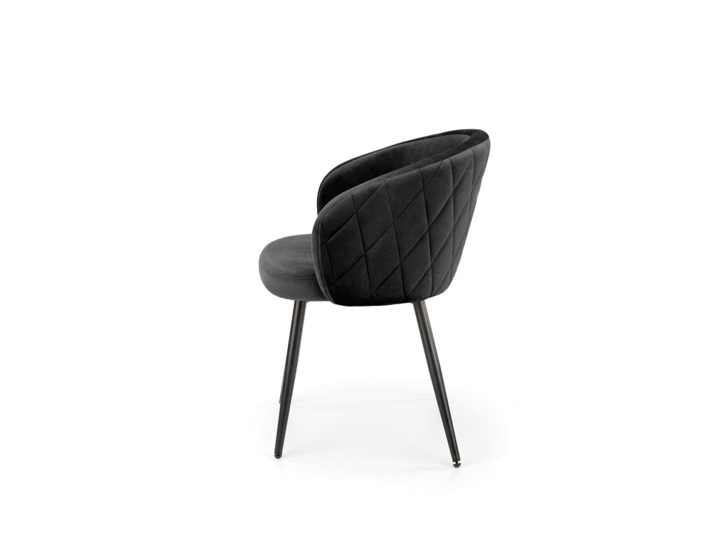 Židle VMK430 je moderní jídelní židle čalouněná sametovou látkou v nadčasové černé barvě, která dodá každému interiéru výraz elegance, čistoty a luxusu. Samet je oblíbený pro svou jemnost, příjemný dotek a schopnost vytvářet jemný lesk, který se mění v závislosti na světle – černá tak získává hloubku a sofistikovaný vzhled.