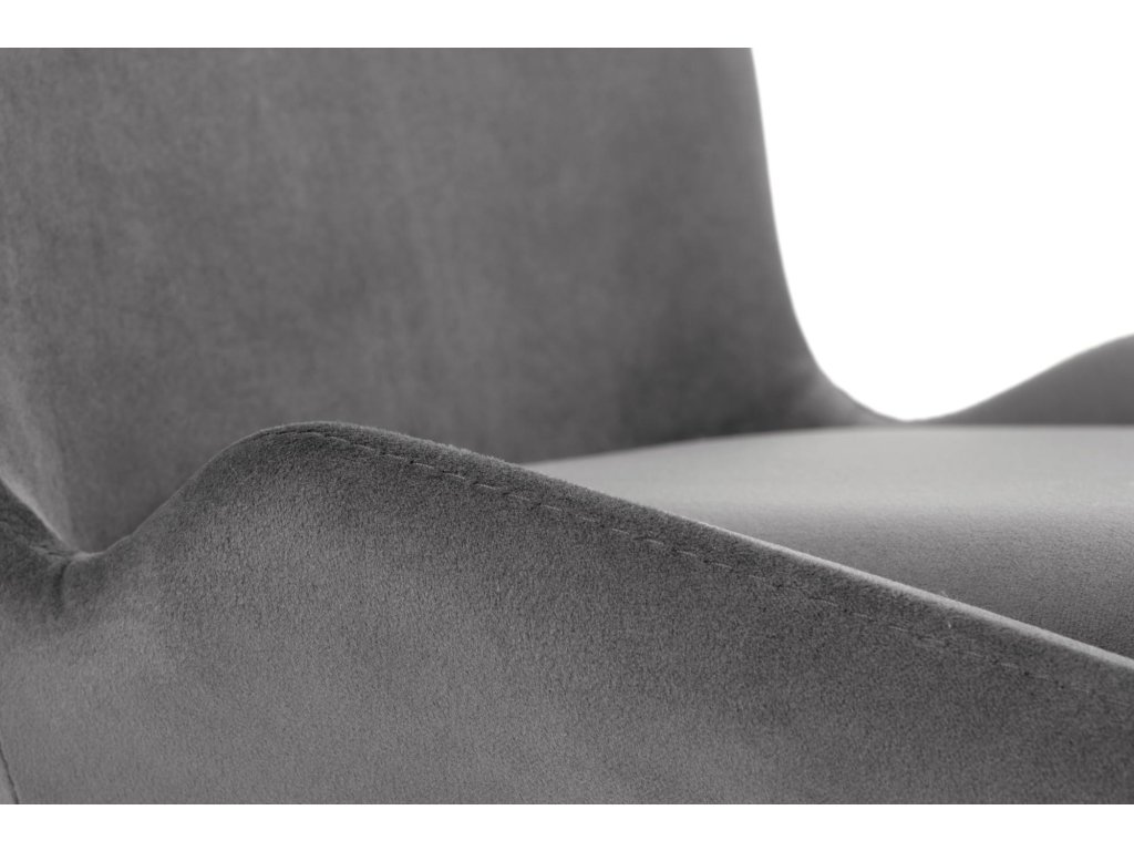 Tato židle je čalouněná kvalitní sametovou látkou, která působí velmi elegantně a má nádherný třpytivý efekt. Samet je nejen esteticky přitažlivý, ale také mimořádně příjemný na dotek, což přispívá k celkovému komfortu při sezení. Šedá barva je nadčasová a skvěle se hodí do různých stylů interiérů, od moderních po industriální a loftové prostory.