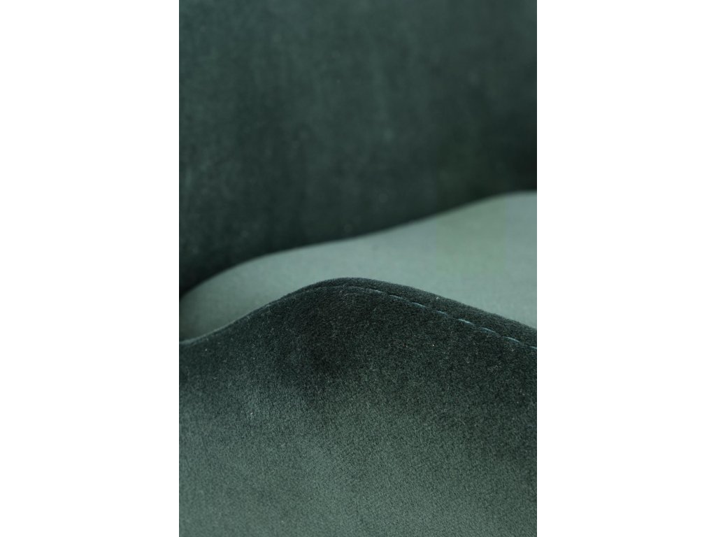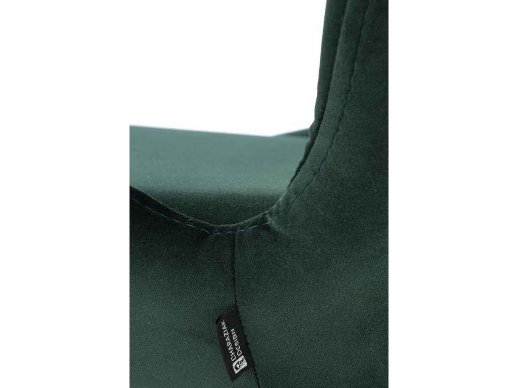 Tato židle je čalouněná kvalitní sametovou látkou, která působí velmi elegantně a má nádherný třpytivý efekt. Samet je nejen esteticky přitažlivý, ale také mimořádně příjemný na dotek, což přispívá k celkovému komfortu při sezení. Tmavě zelená barva je v současnosti velkým trendem a krásně se hodí k různým stylům interiéru, zejména k loftovým a moderním prostorám.