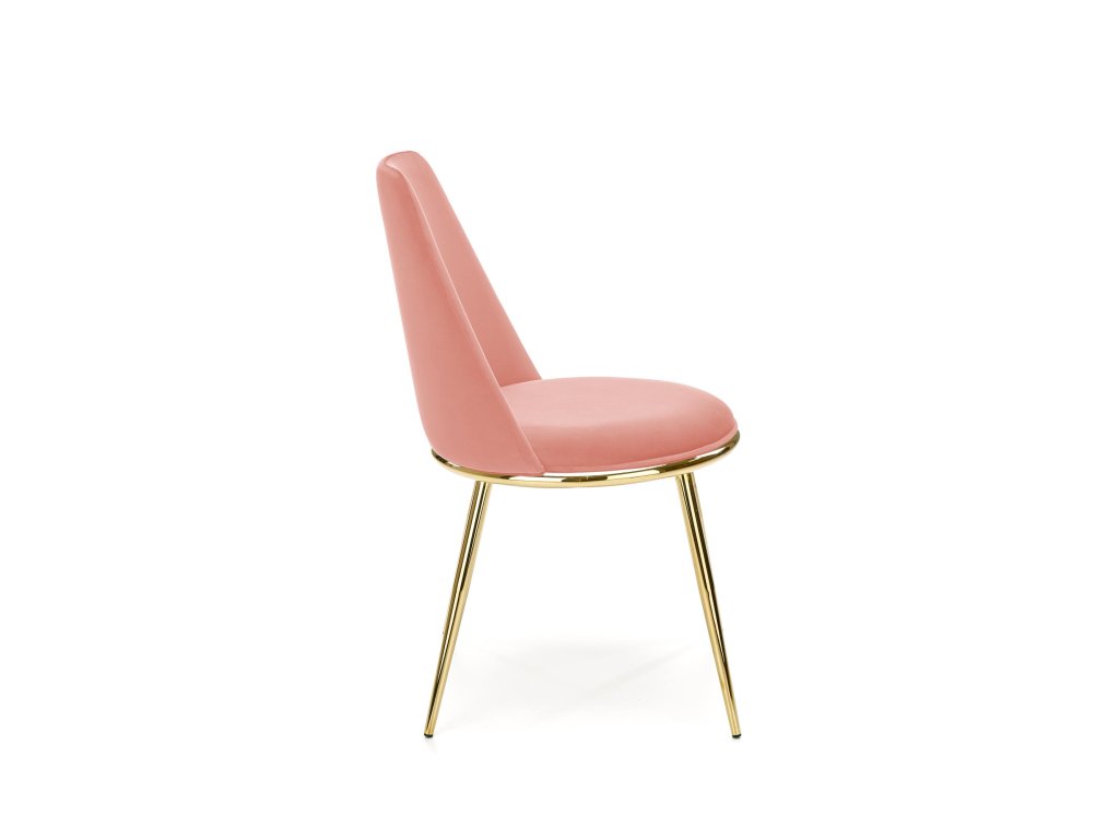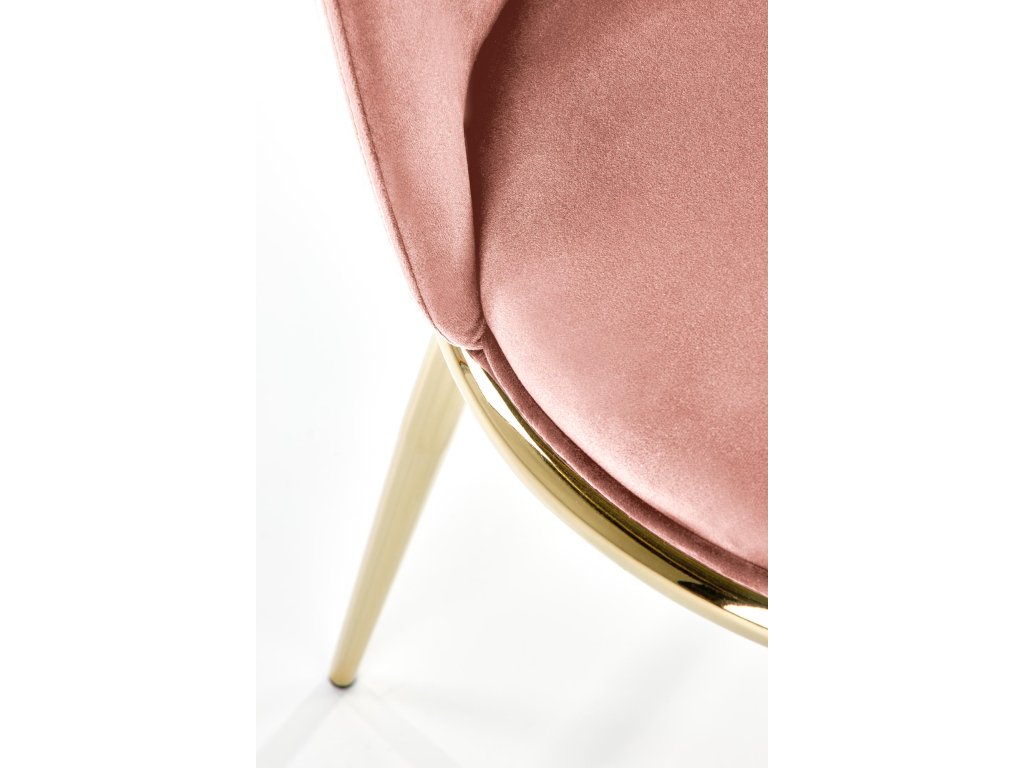 Jídelní židle VMK460 v růžové barvě je navržena s důrazem na eleganci, pohodlí a kvalitu. Skvěle se hodí do moderních i klasických interiérů zařízených v glamour stylu. Díky kombinaci sametového potahu a zlatých kovových nohou působí luxusně a zároveň zajišťuje stabilní a komfortní sezení.