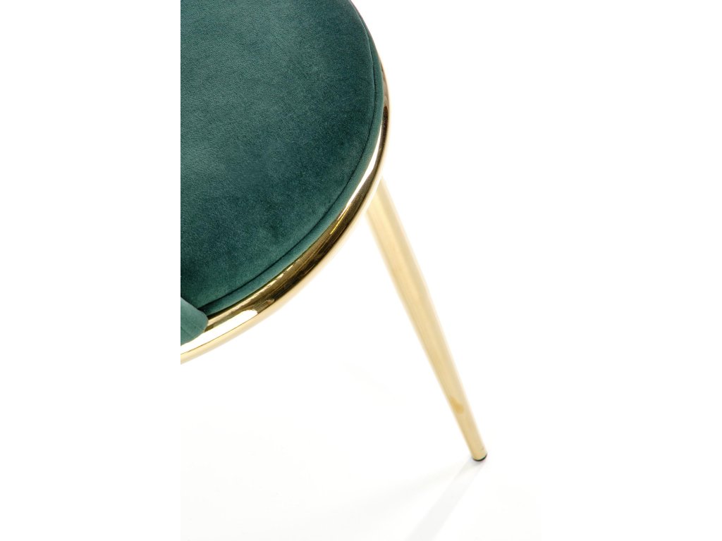 Jídelní židle VMK460 v zelené barvě je navržena s důrazem na eleganci, pohodlí a kvalitu. Skvěle se hodí do moderních i klasických interiérů zařízených v glamour stylu. Díky kombinaci sametového potahu a zlatých kovových nohou působí luxusně a zároveň zajišťuje stabilní a komfortní sezení.