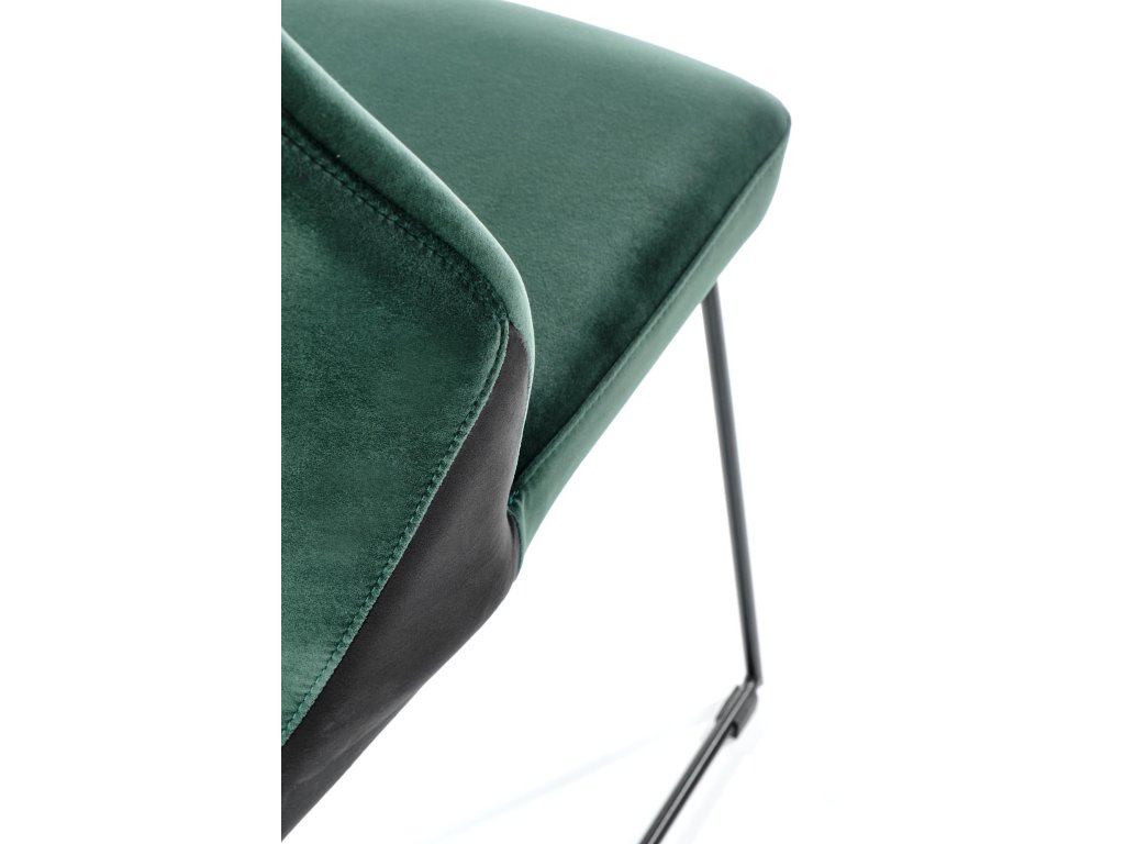 Jídelní židle VMK485 v tmavě zeleném sametu je ideální volbou pro ty, kteří hledají spojení designu, komfortu a kvality. Vysoký opěrák v kombinaci s netradičně řešenou černou kovovou podnoží dodává židli výrazný moderní vzhled, který se skvěle hodí do jídelny, obývacího pokoje nebo interiéru v industriálním stylu.