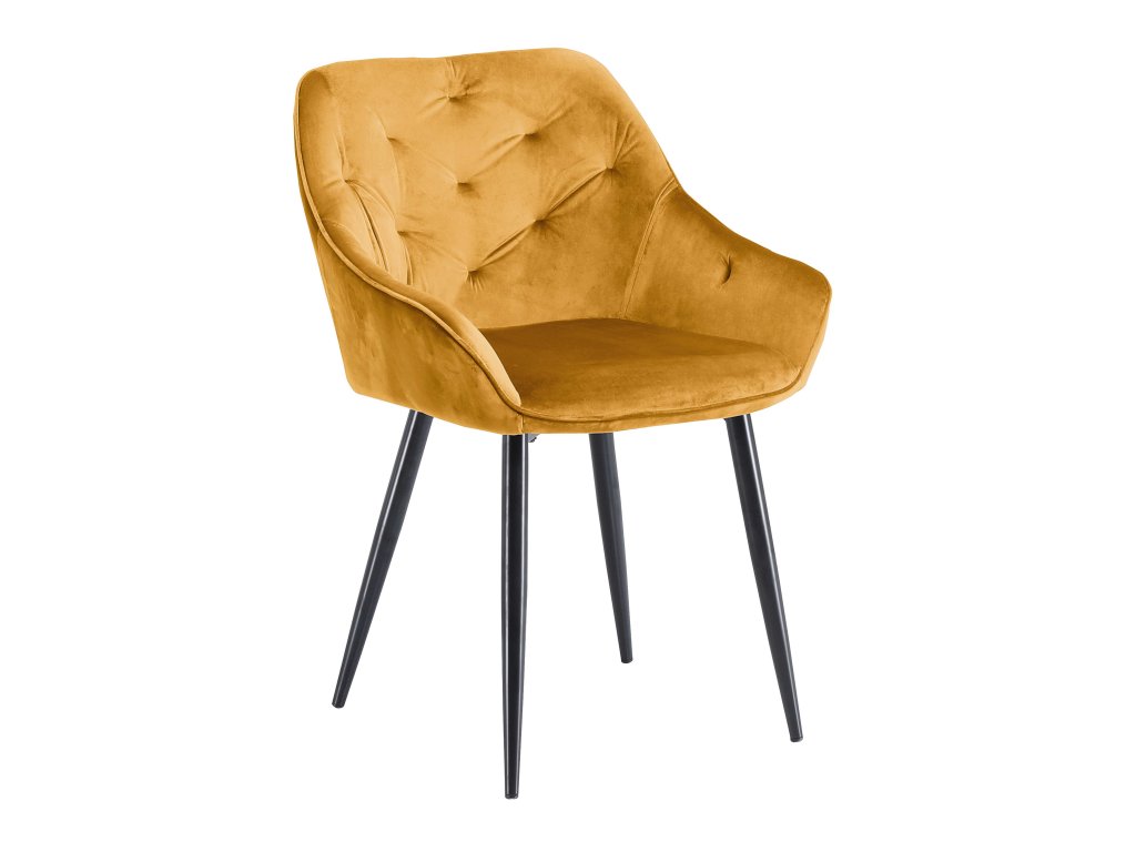 Jídelní židle / křeslo VMK487 hořčicová – elegance a pohodlí v sametovém provedení