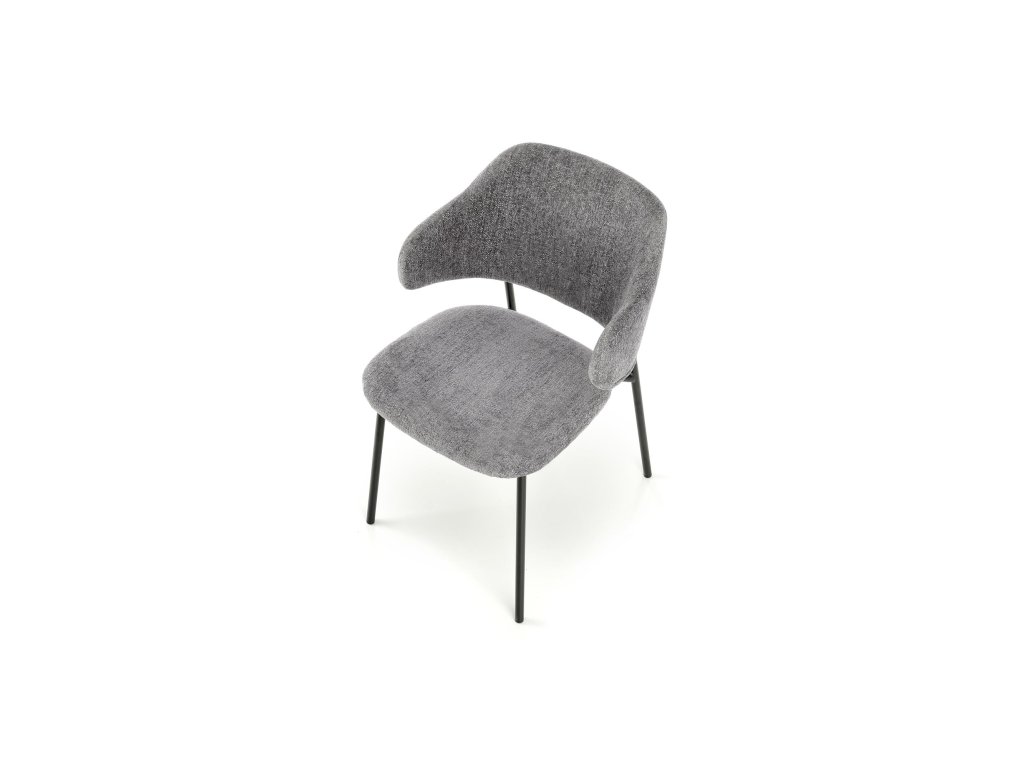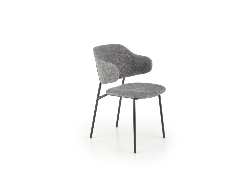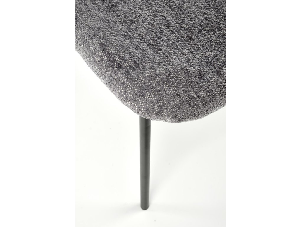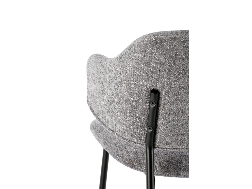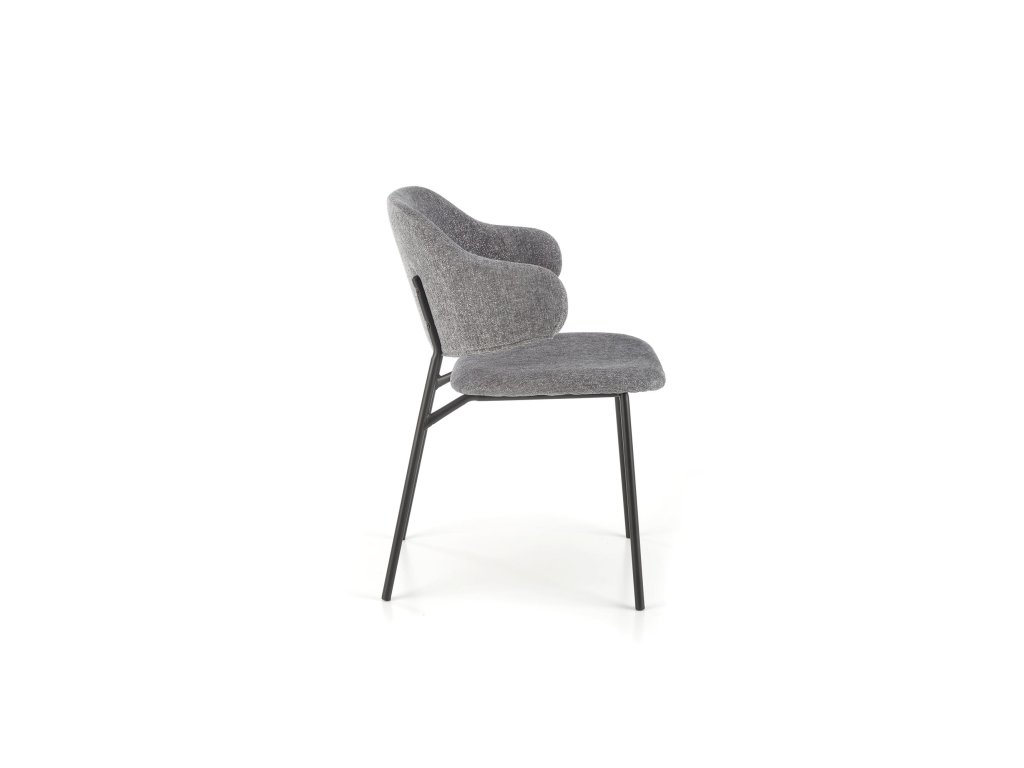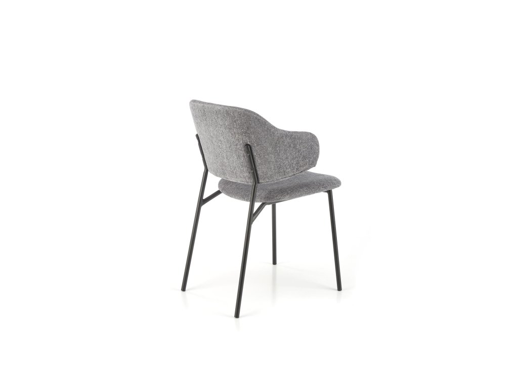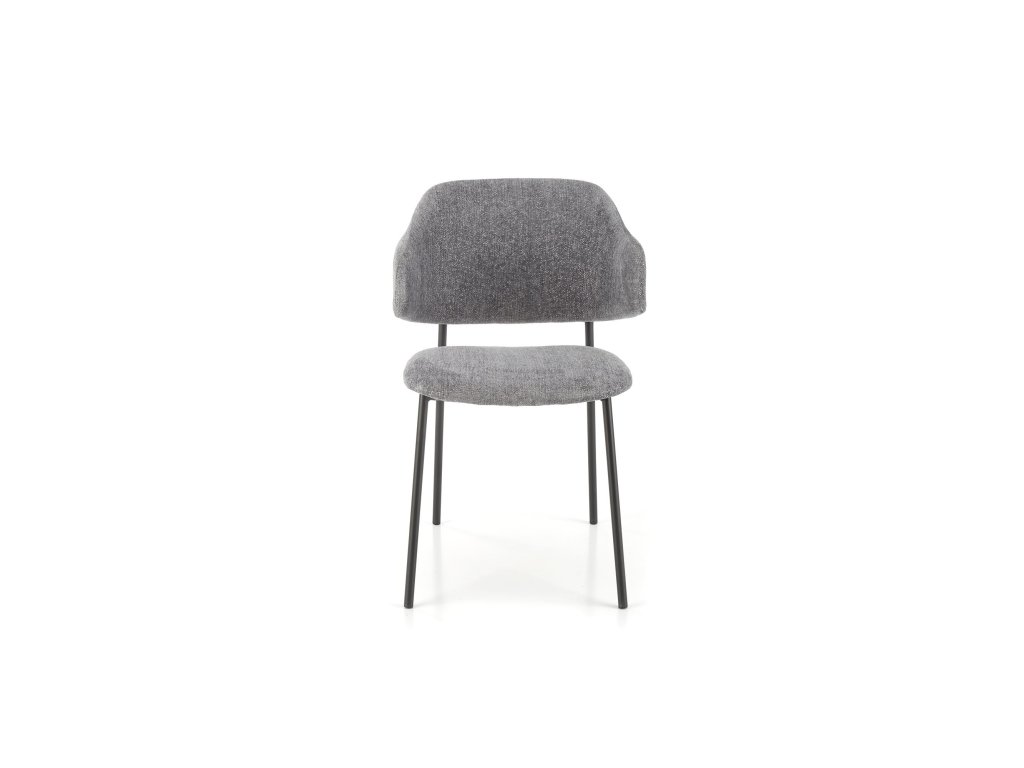 Čalounění z jemné šedé látky poskytuje příjemný komfort při sezení a zároveň je odolné vůči každodennímu opotřebení. Profilovaná opěrka zad zajišťuje přirozenou oporu zad, což oceníte při každodenním používání. Nohy z černé práškově lakované oceli zaručují stabilní konstrukci a dlouhou životnost.