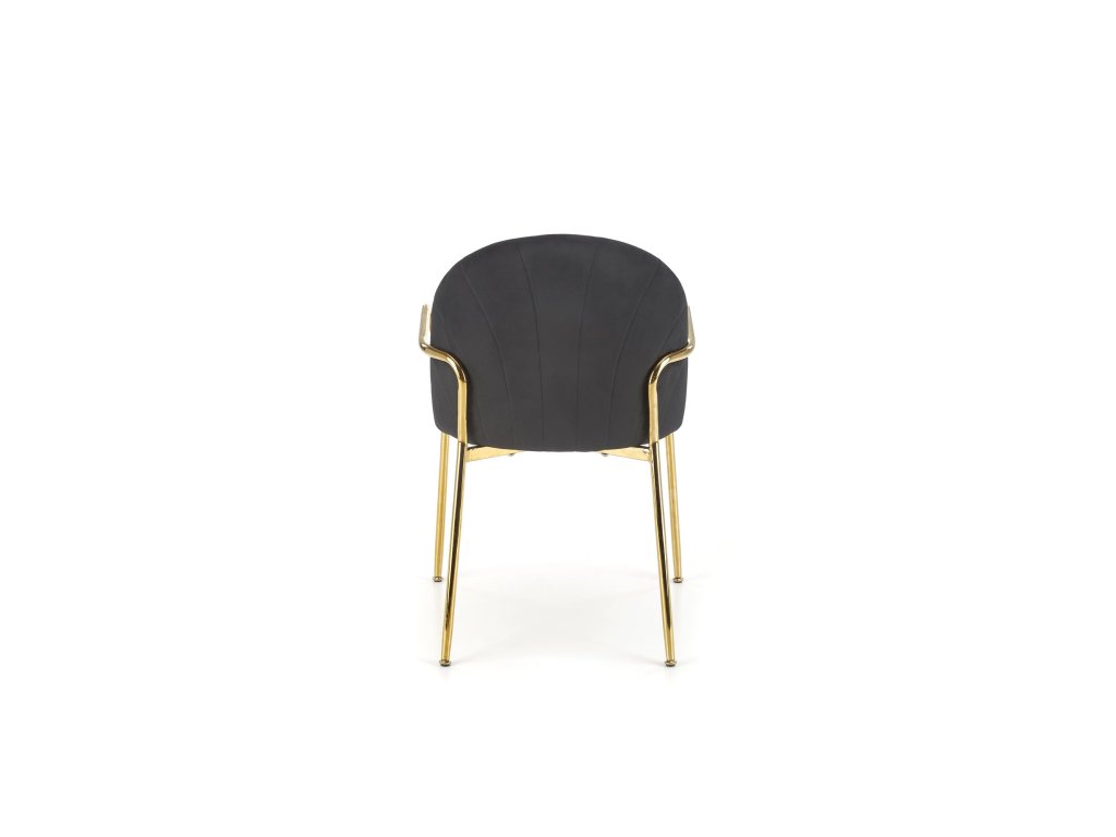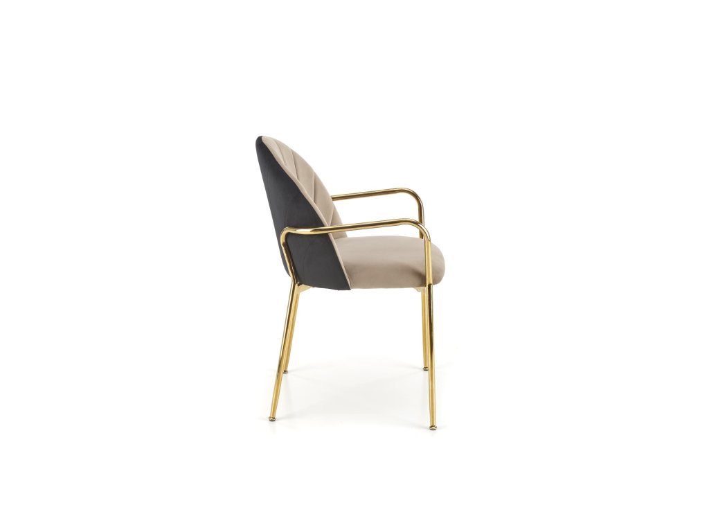 Opěradlo s dekorativním vertikálním prošíváním dodává židli atraktivní design. Područky i nohy jsou vyrobeny z chromované oceli ve zlaté barvě, která nejen upoutá na pohled, ale zároveň zajišťuje pevnost a stabilitu. Díky tomu je židle vhodná i pro každodenní používání.