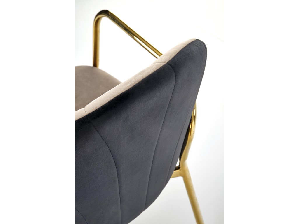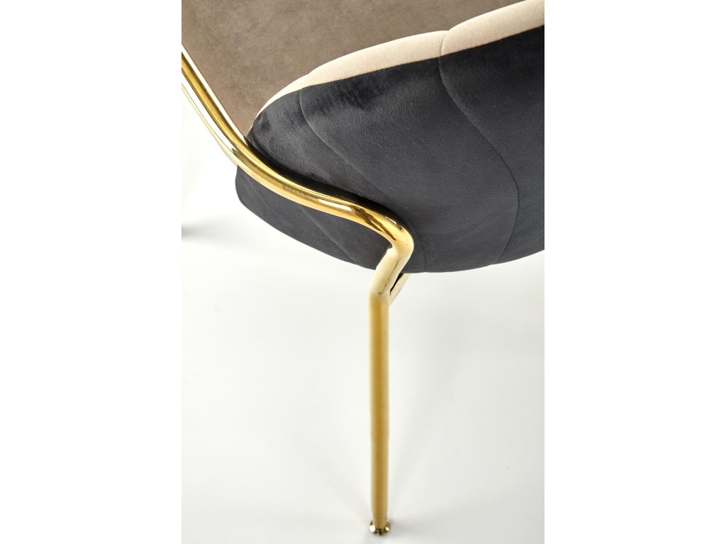 Jídelní židle VMK500 je elegantní a pohodlné řešení pro každého, kdo si potrpí na stylový a kvalitní interiér. Kombinace béžového sedáku a černého opěradla potaženého sametem působí sofistikovaně a současně útulně. Sametový potah je příjemný na dotek a krásně se leskne, což podtrhuje luxusní vzhled celého kusu nábytku.