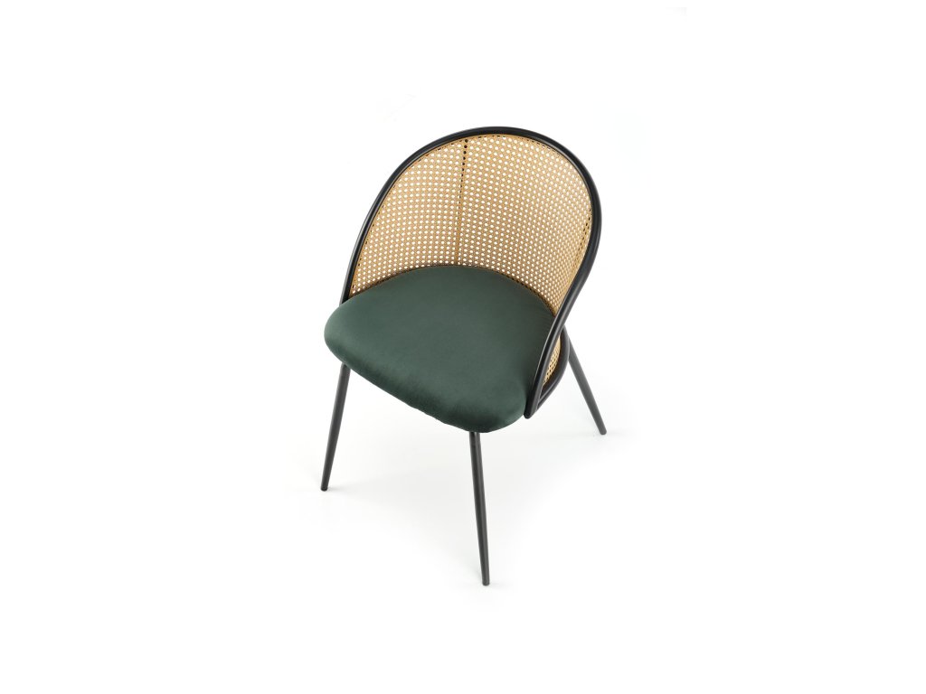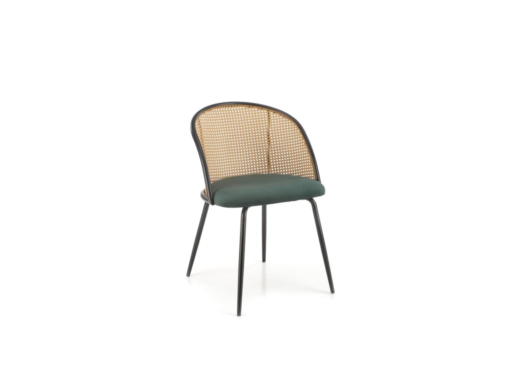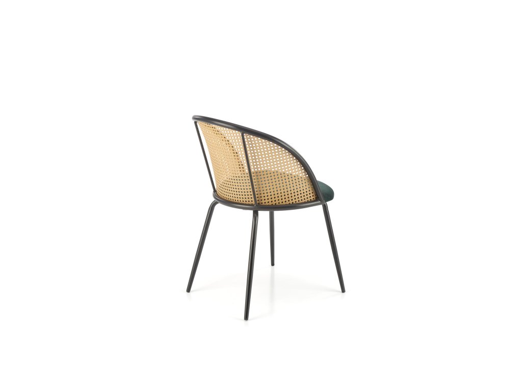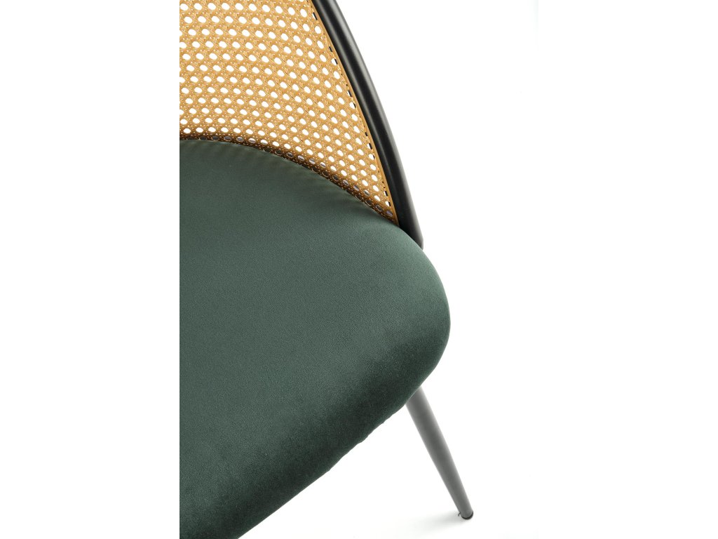 Židle VMK508 v tmavě zelené barvě je elegantní a pohodlný nábytek, který se stane skvělým doplňkem do moderních interiérů. Kombinace sametového sedáku, rattanového opěráku a kovových nohou vytváří harmonický a nadčasový design. Tato židle je ideální volbou pro jídelny, obývací pokoje, pracovny nebo komerční prostory.