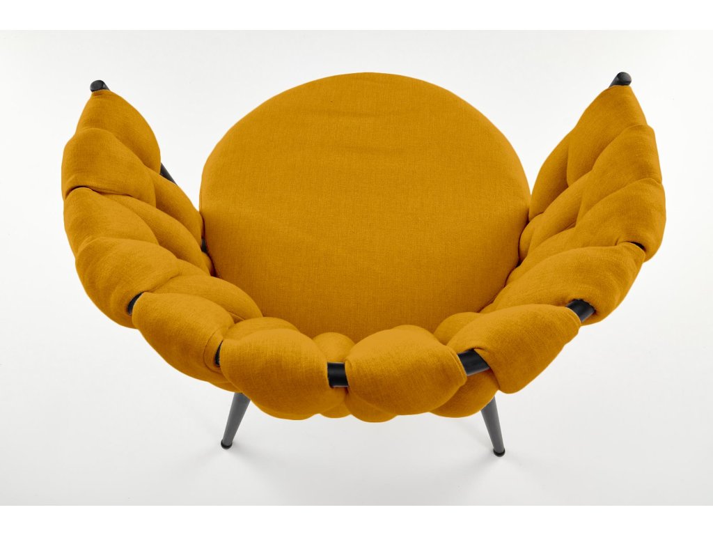 Výrazný design: Hořčicové čalounění dodá interiéru svěží a moderní vzhled s nádechem originality.