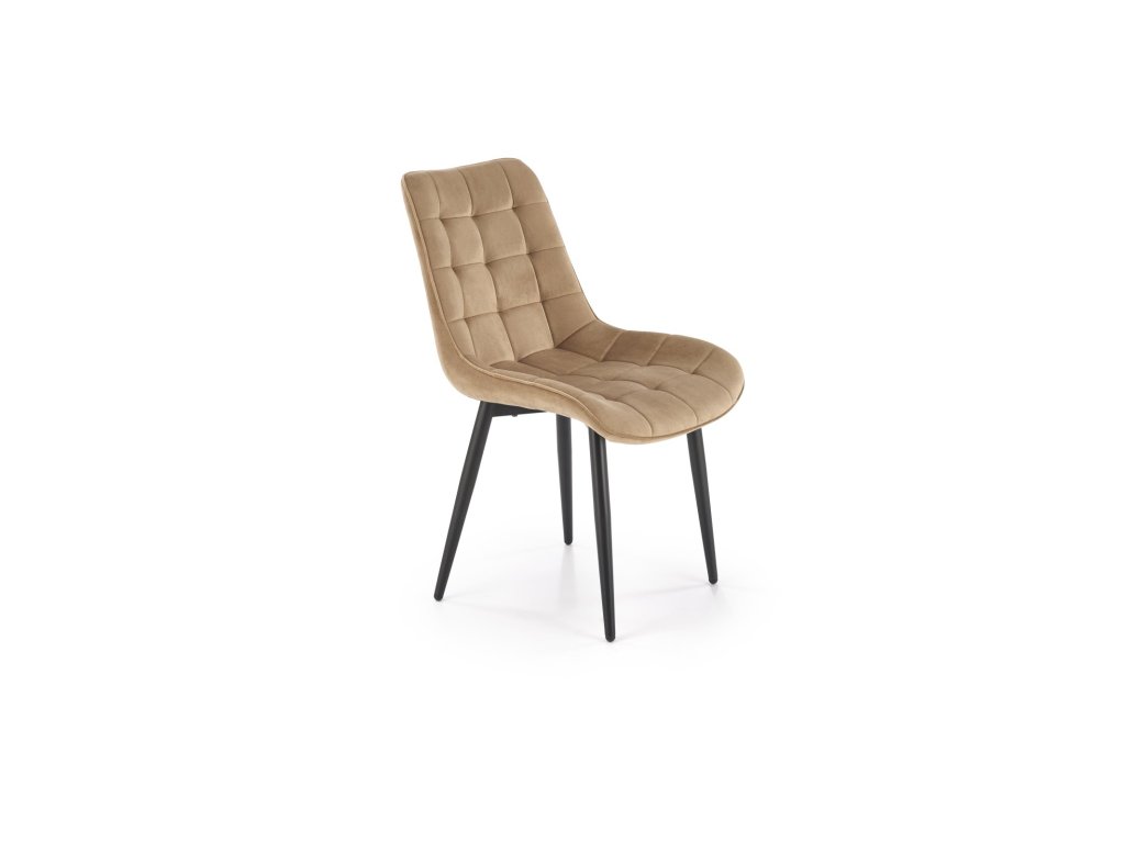 Konstrukci doplňují stabilní černé kovové nohy, které zajišťují pevnost a vizuální kontrast. Nosnost židle je až 100 kg, což z ní činí spolehlivý a odolný prvek každodenního používání. Ergonomický tvar a pečlivé zpracování poskytují maximální pohodlí i při delším sezení.