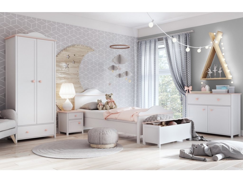 Dvoudveřová komoda PIXIE 11 kombinuje styl a funkčnost a pomáhá udržet pokoj útulný, romantický a přehledný.