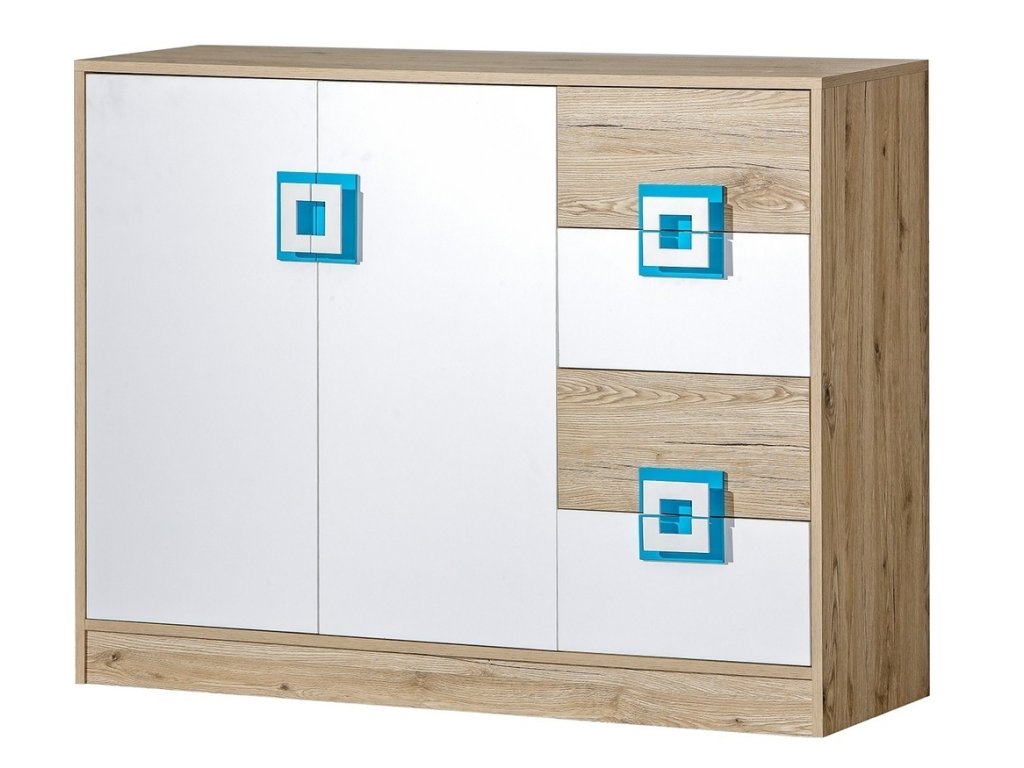 Komoda do dětského pokoje FINN 8 | dub jasný / bílá / tyrkys