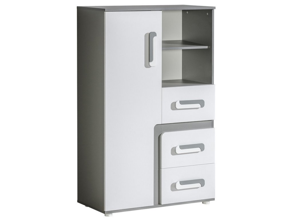 Elegantní design: Antracit a bílá barva komody snadno ladí s ostatním nábytkem a doplňky v dětském pokoji.