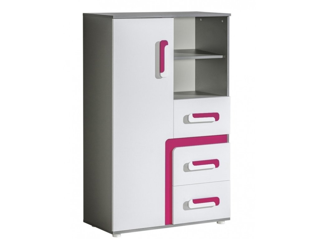 Elegantní design: Antracit a růžová barva komody snadno ladí s ostatním nábytkem a doplňky v dětském pokoji.