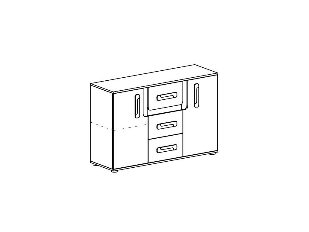 Praktické rozměry: výška 84 cm, šířka 128 cm, hloubka 40 cm – komoda se vejde i do menšího pokoje.