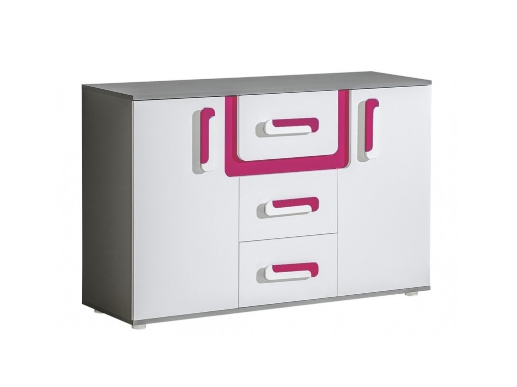 Hledáte moderní a praktický nábytek do dětského nebo studentského pokoje? Komoda do dětského pokoje SOLETTA 7 je ideální volbou. Kombinace antracitového korpusu a růžových dvířek působí hravě a svěže – perfektně zapadne do pokoje menších dětí i dospívajících dívek, které ocení veselý a přitom elegantní styl.