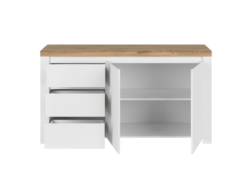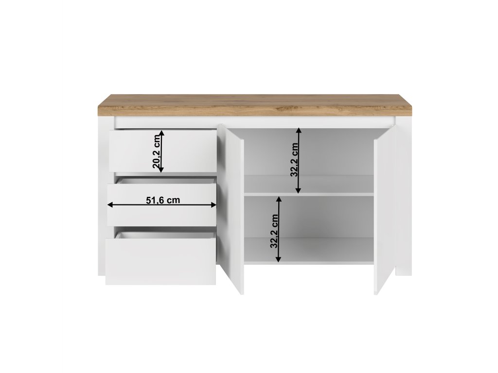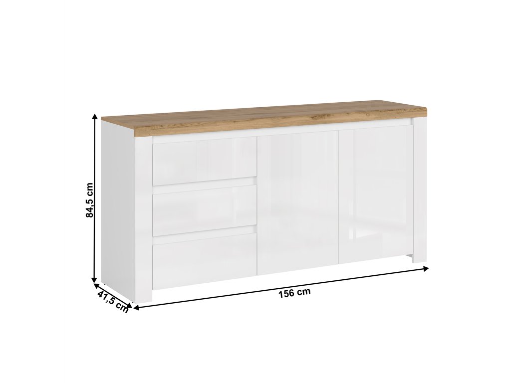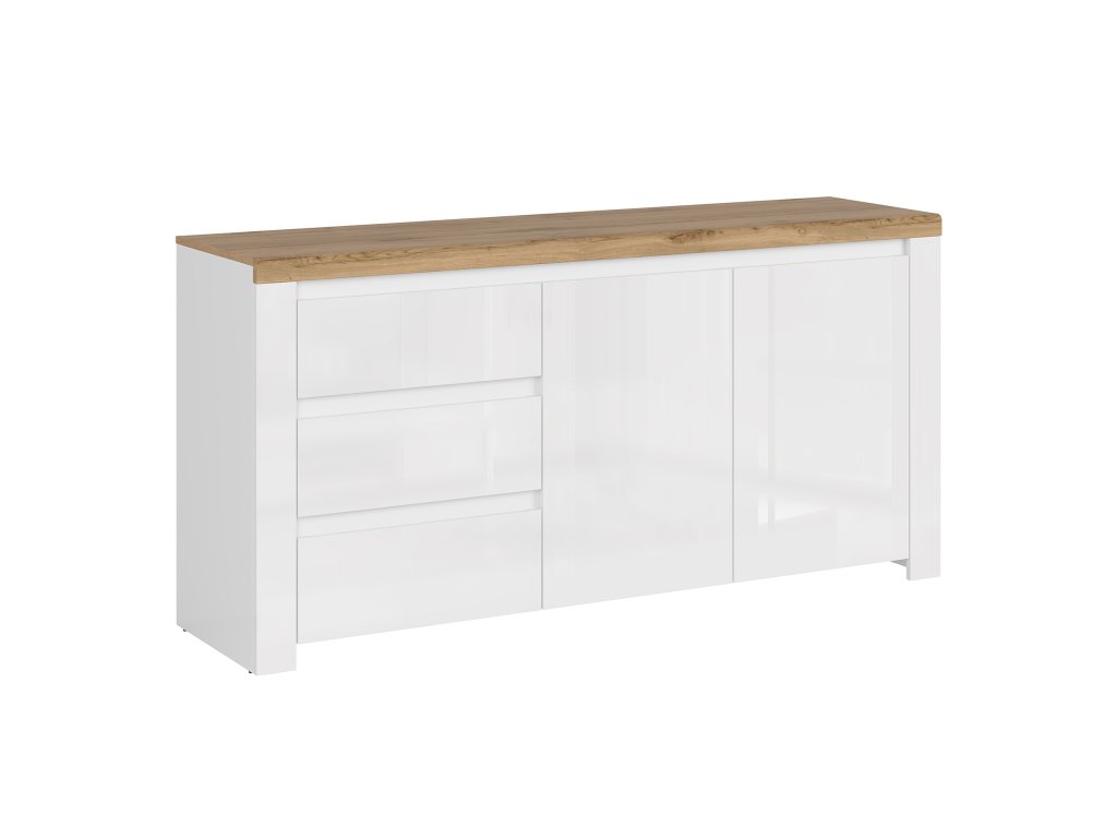 Komoda JANKO 2D3S bílý lesk / dub wotan