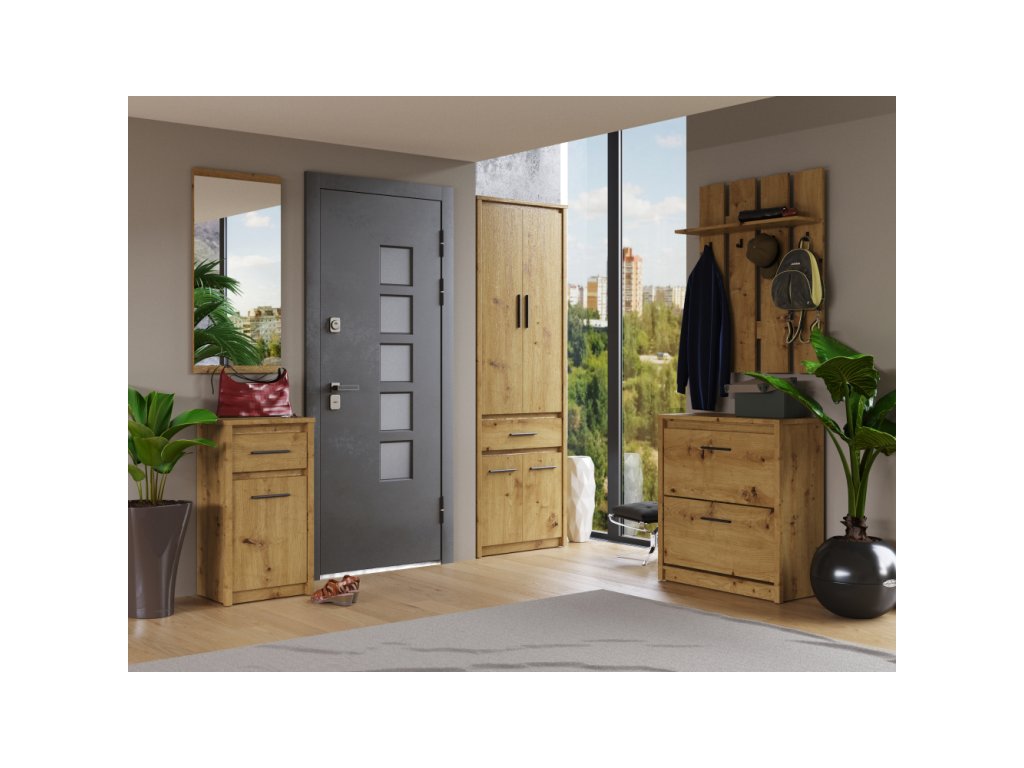 Komoda LITZY 1D1S v odstínu dub artisan kombinuje moderní design s praktickým uspořádáním prostoru. Vyrobena z kvalitní laminované DTD s ABS hranami, nabízí odolnost a dlouhou životnost.