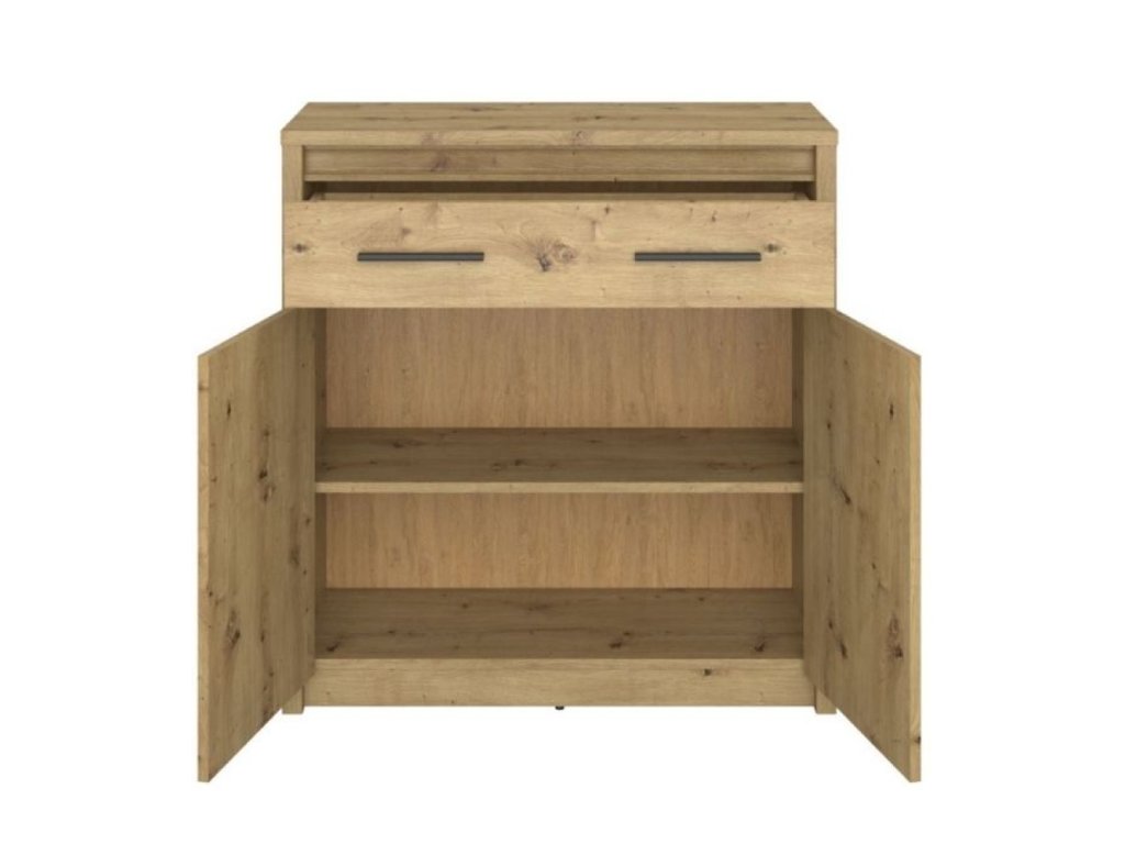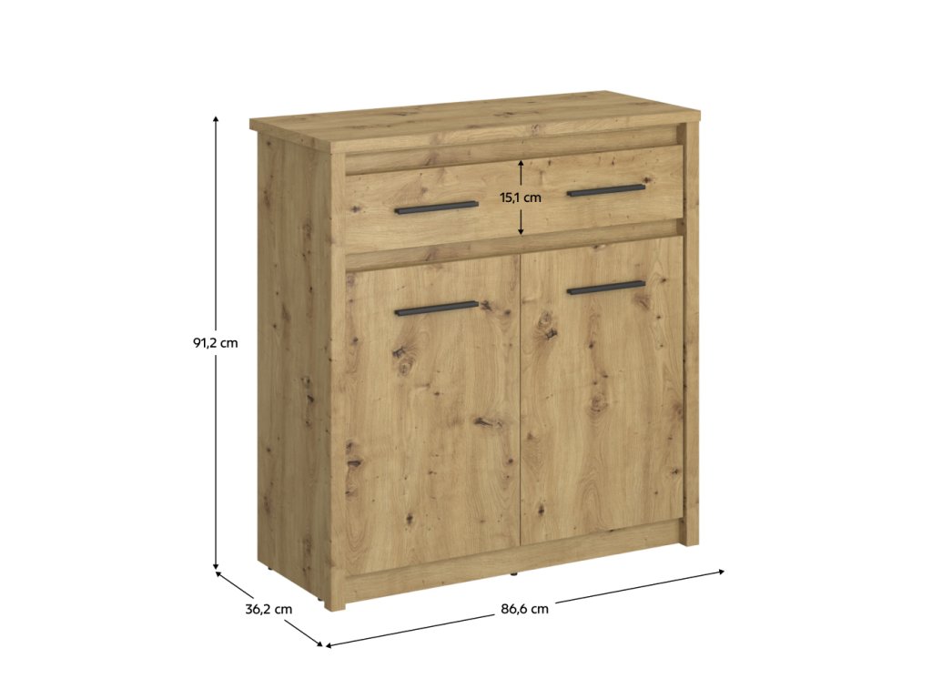 Komoda LITZY 2D1S v dekoru dub artisan nabízí kombinaci moderního designu a praktického úložného řešení. Dvoudveřová skříňka s policemi a šuplík poskytují dostatek prostoru pro oblečení, doplňky nebo domácí drobnosti.
