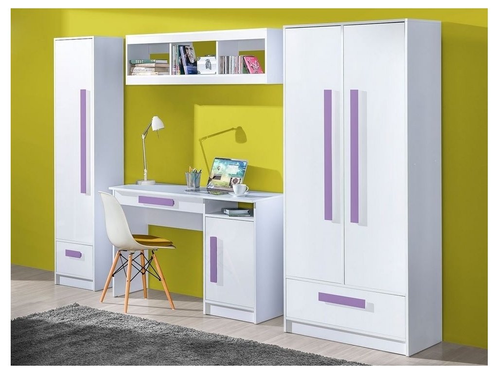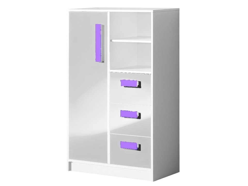 Komoda MALIA 5 do dětského pokoje - bílá lesk / fialová