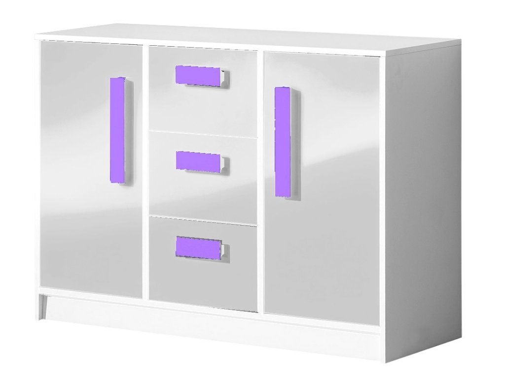 Komoda MALIA 6 do dětského pokoje - bílá lesk / fialová
