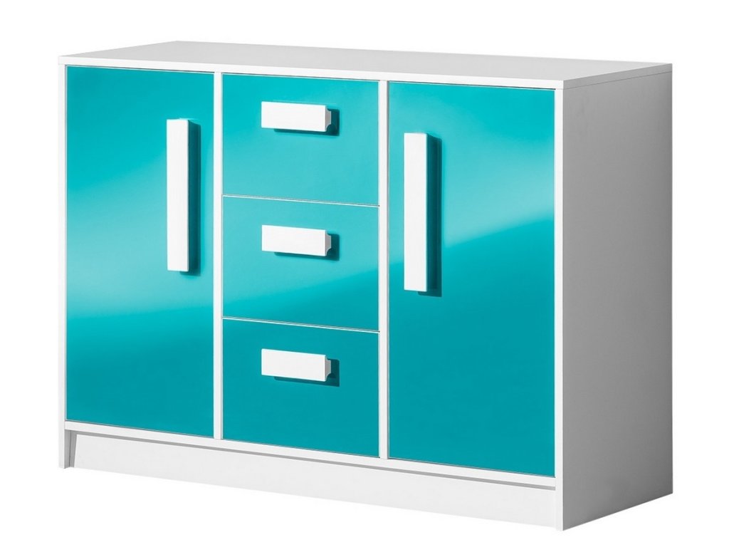 Komoda MALIA 6 do dětského pokoje - bílá / tyrkys lesk