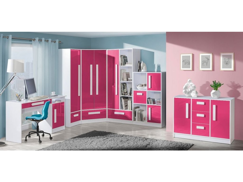 Komoda MALIA 7 do dětského pokoje - bílá / růžová lesk