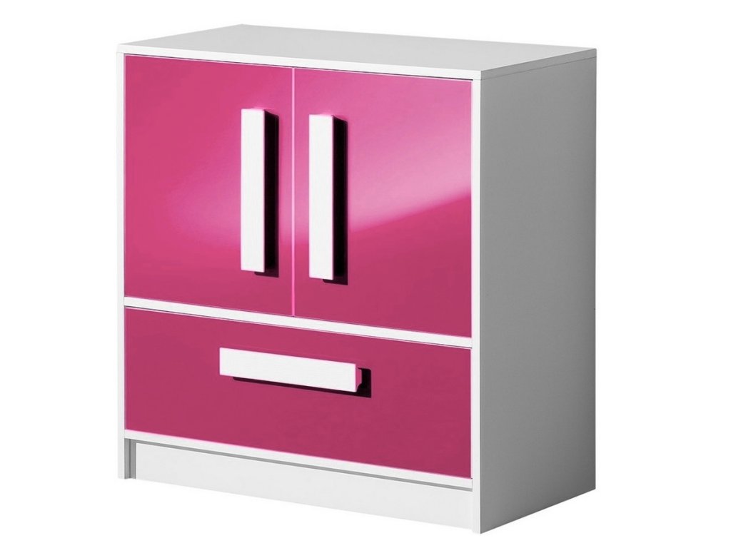 Komoda MALIA 8 do dětského pokoje - bílá / růžová lesk
