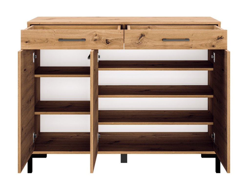 Udržujte svůj interiér organizovaný a stylový s nízkou komodou FERID 3D2S. Tento praktický nábytek v dekoru dub artisan kombinuje moderní design s funkčností a snadno doplní předsíň, ložnici nebo obývací pokoj. Díky univerzálnímu provedení může sloužit také jako botník nebo prostor pro uložení drobných předmětů a doplňků.