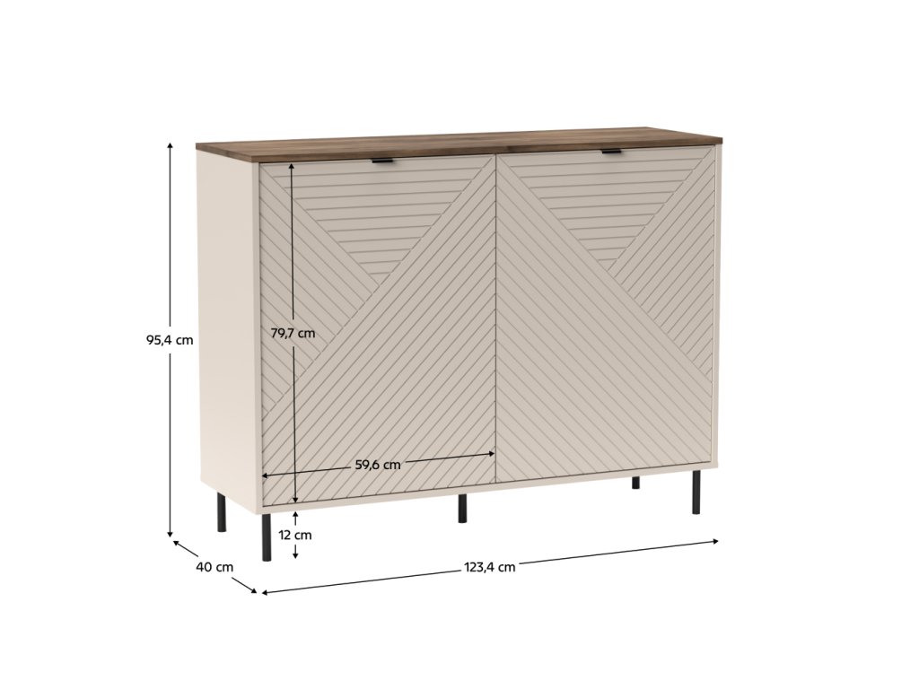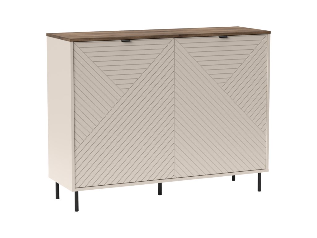 Komoda SAIDY 2DS kombinuje moderní design s praktickým úložným prostorem. Díky elegantní kombinaci dekoru kašmír a dub castello se hodí do obývacího pokoje, ložnice i pracovny.