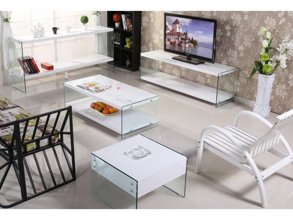 Konferenční stolek BIBIONE bílý / sklo