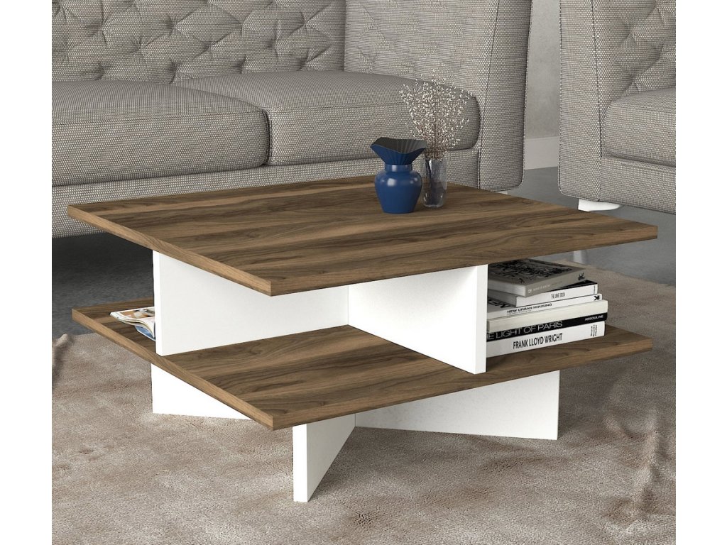 Konferenční stolek je vyroben z kvalitního lamina o tl.18 mm hraněné PVC páskou, odolného proti poškrábání v kombinaci barev vlašský ořech/bílá matná. Dodáváme v demontovaném stavu.