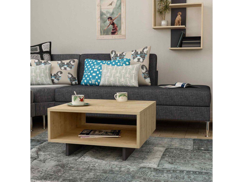Potřebujete nový konferenční stolek do obývacího pokoje? je moderní, designový konferenční stolek, který splňuje všechny vaše požadavky na funkčnost a estetiku. S jeho elegantní kombinací barev dub a antracit se stane skvostným doplňkem vašeho interiéru.